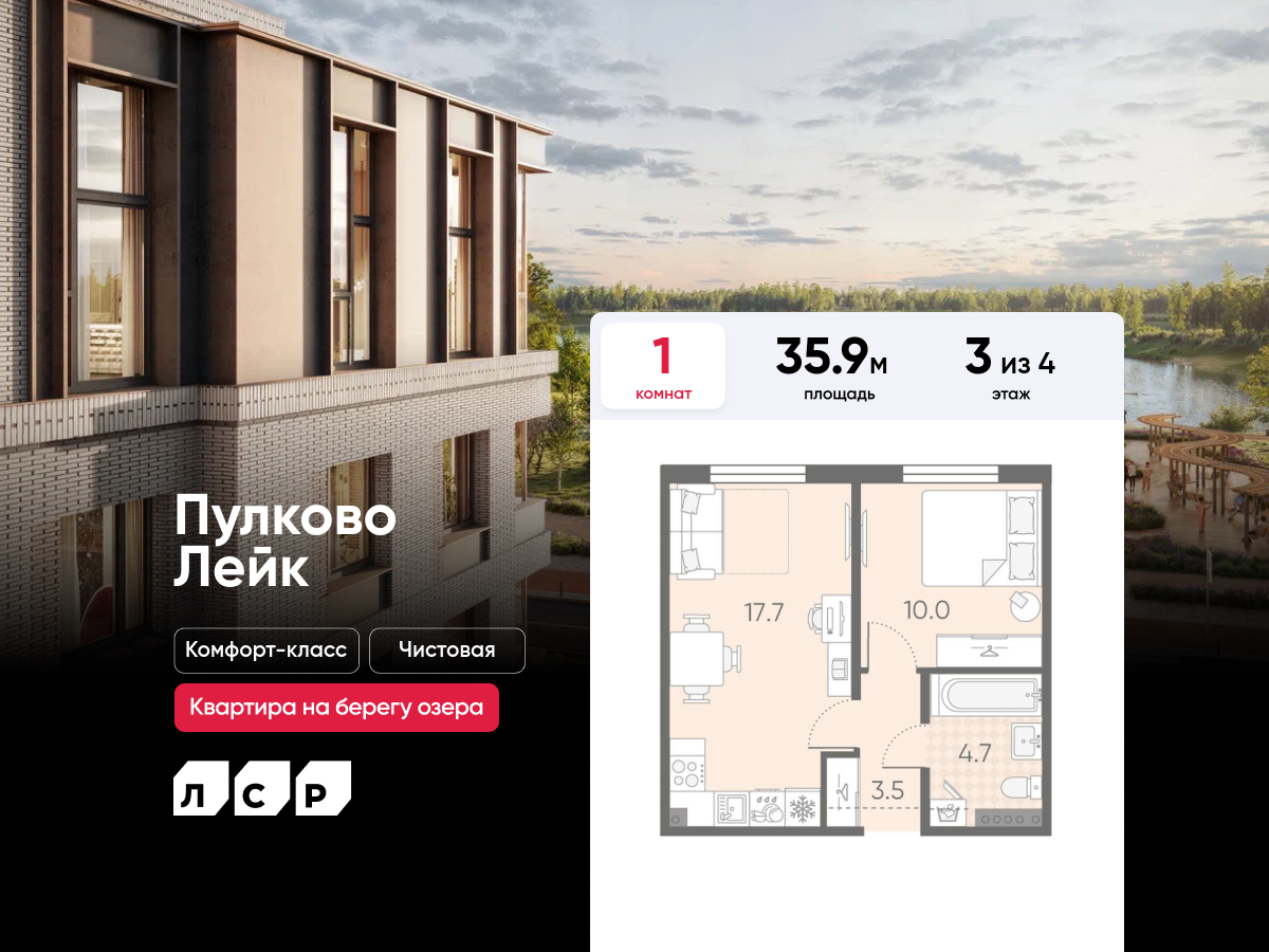 Однокомнатные квартиры в ЖК Пулково Lake (Лэйк)
