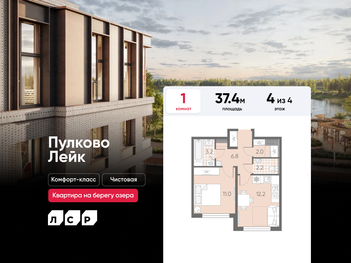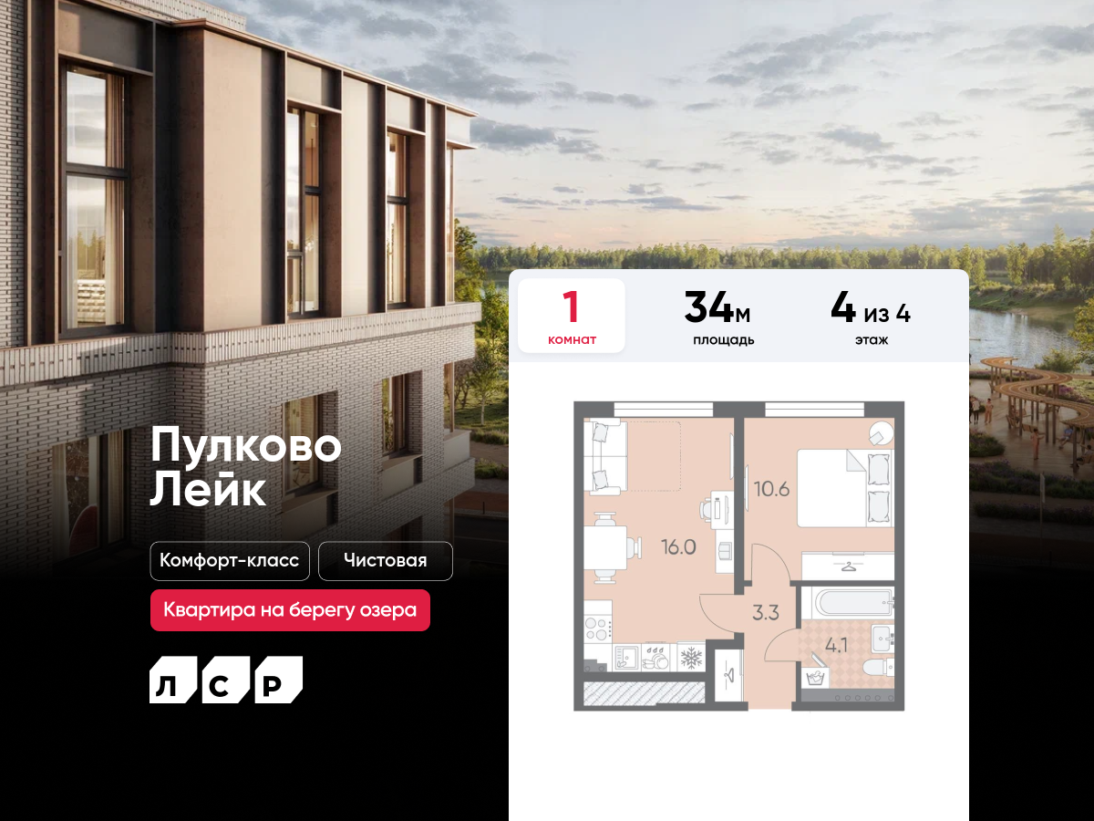 Однокомнатные квартиры в ЖК Пулково Lake (Лэйк)