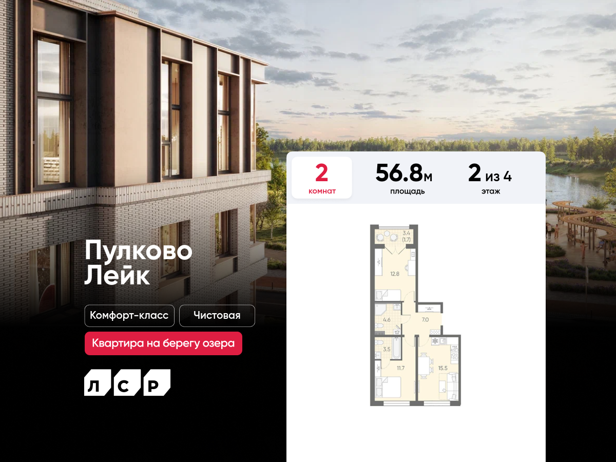 Двухкомнатные квартиры в ЖК Пулково Lake (Лэйк)