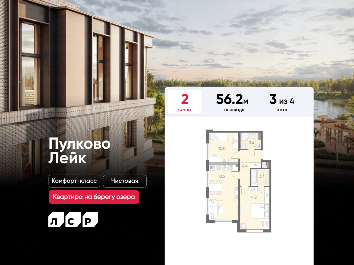 Двухкомнатные квартиры в ЖК Пулково Lake (Лэйк)