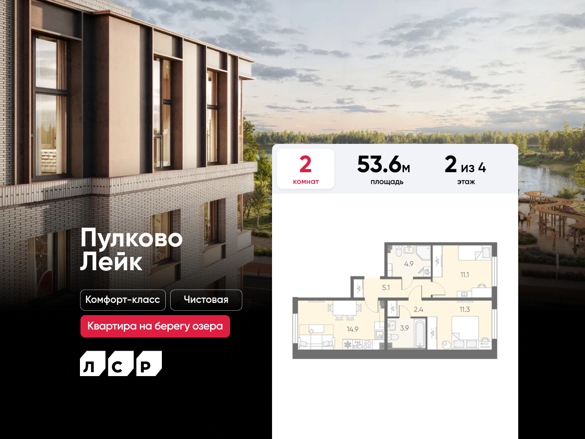 Двухкомнатные квартиры в ЖК Пулково Lake (Лэйк)