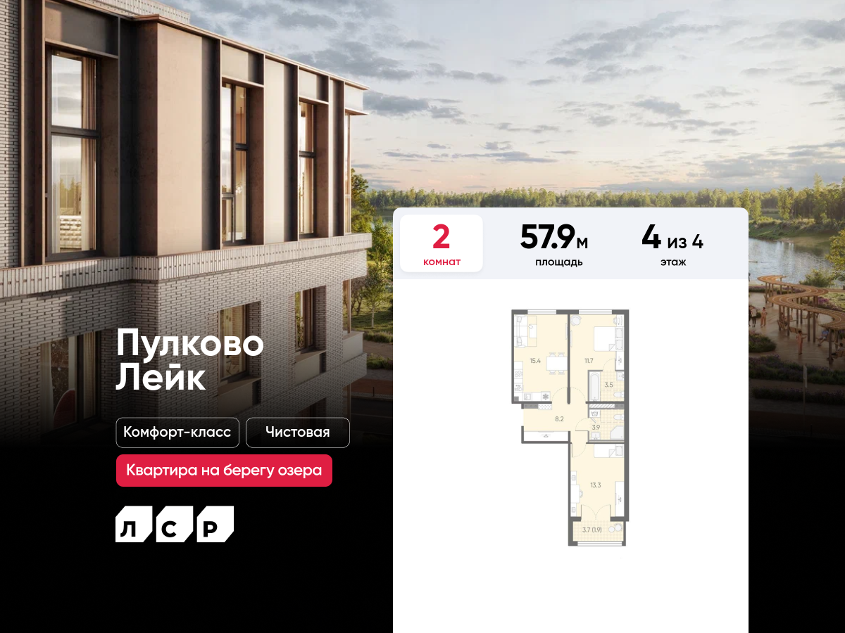 Двухкомнатные квартиры в ЖК Пулково Lake (Лэйк)
