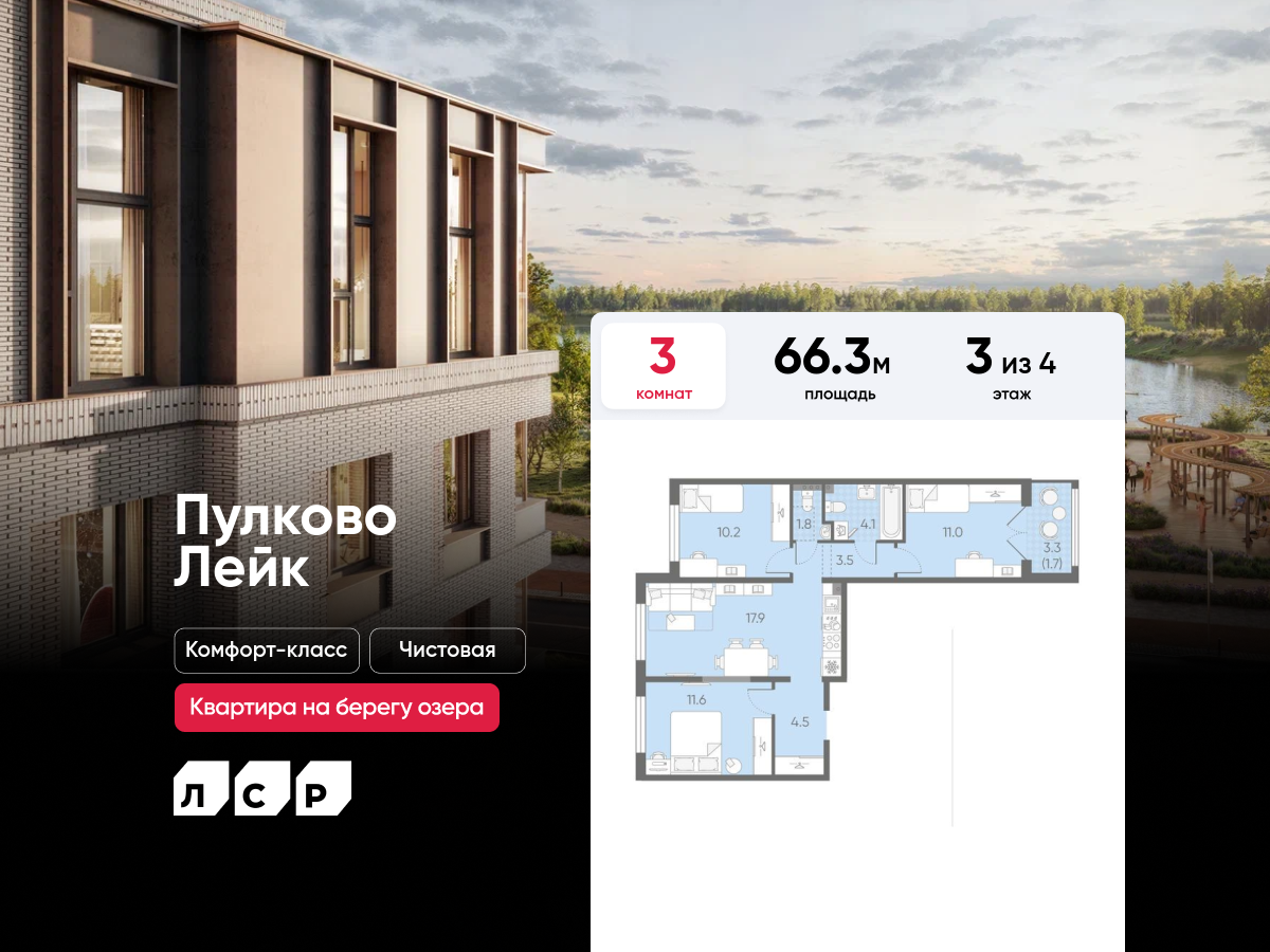 Трехкомнатные квартиры в ЖК Пулково Lake (Лэйк)