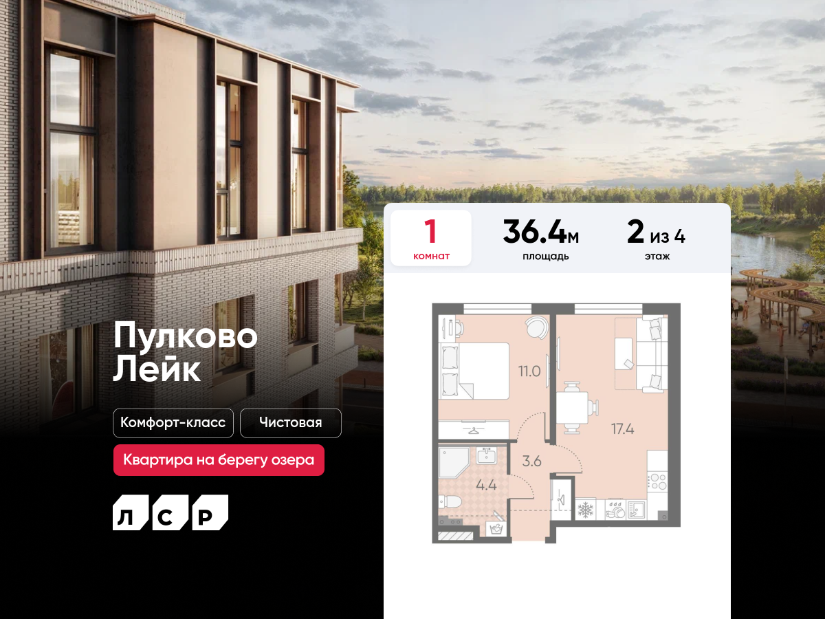 Евро однокомнатные квартиры в ЖК Пулково Lake (Лэйк)
