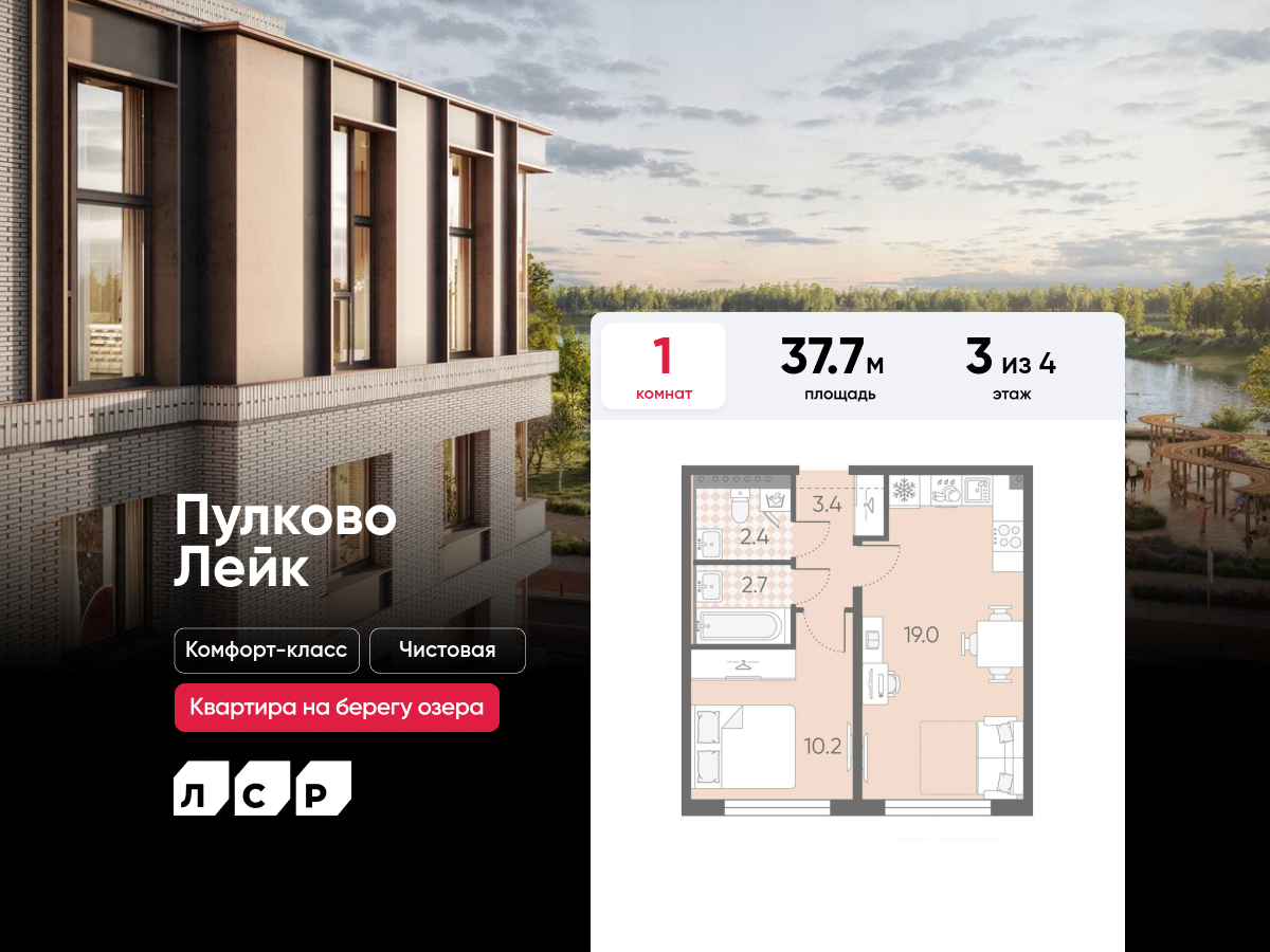 Евро однокомнатные квартиры в ЖК Пулково Lake (Лэйк)
