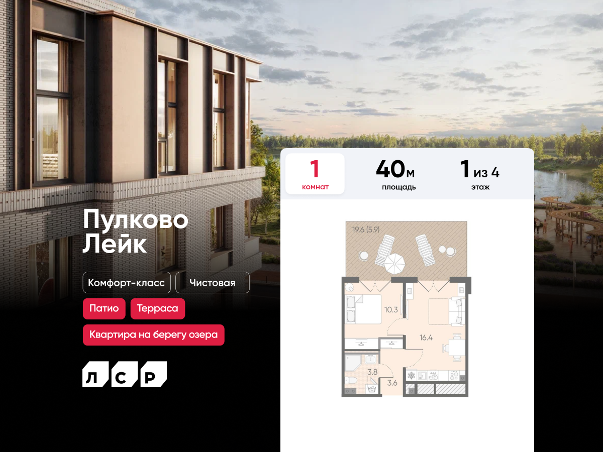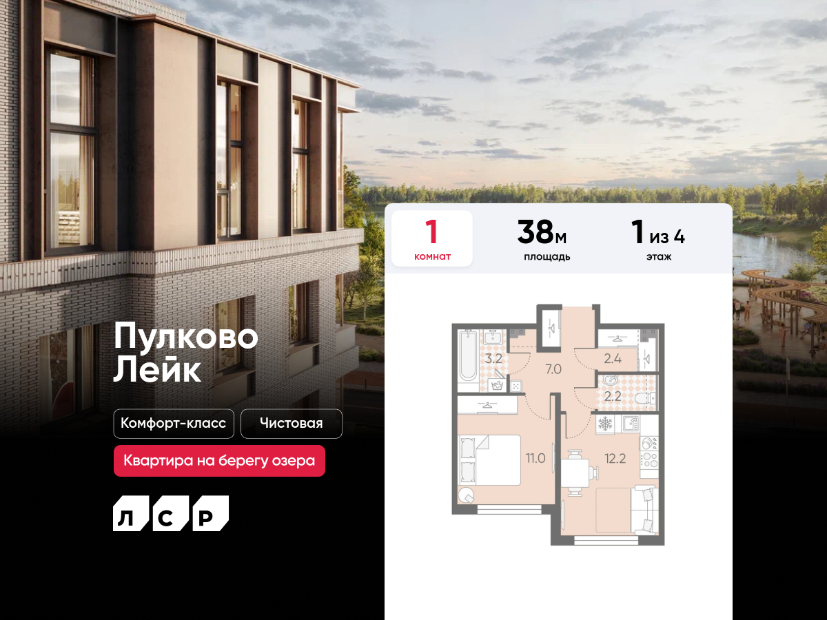 Евро однокомнатные квартиры в ЖК Пулково Lake (Лэйк)