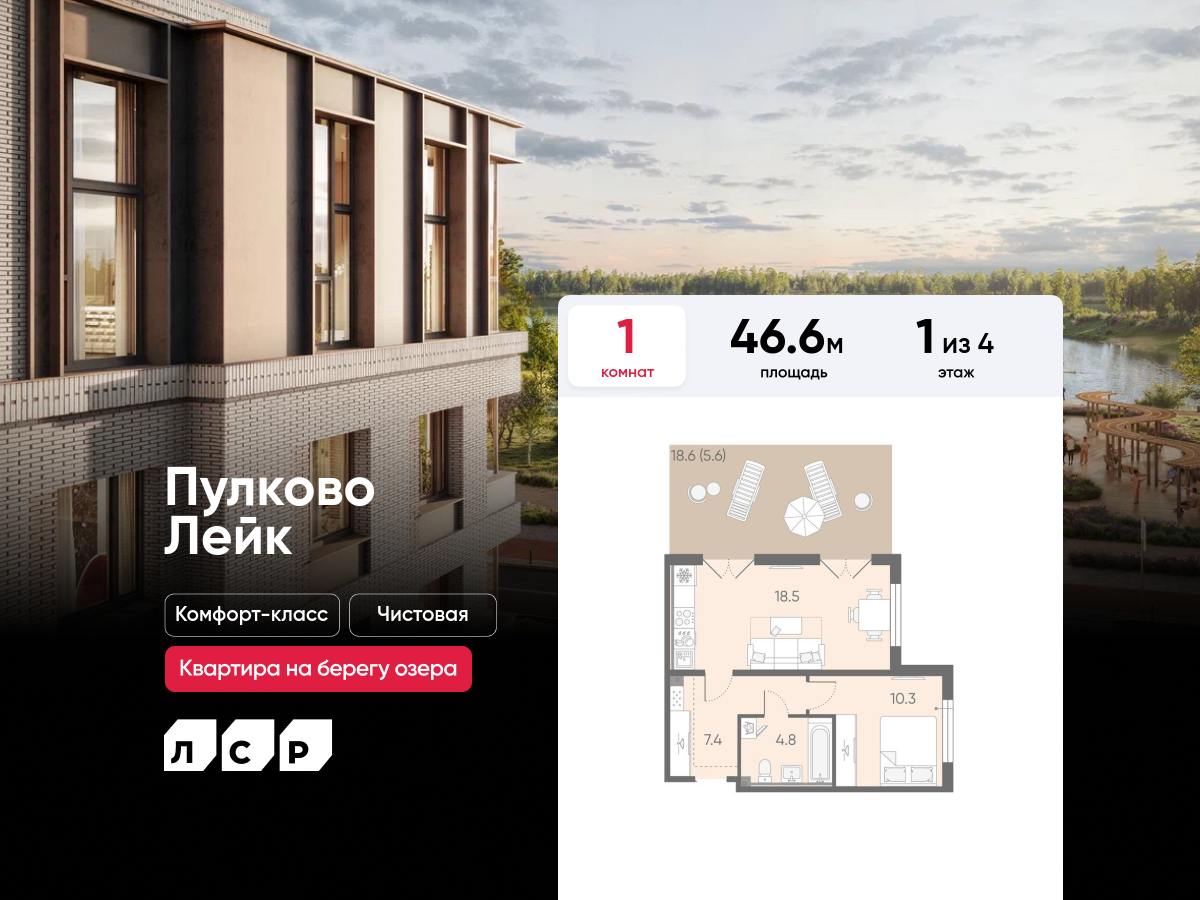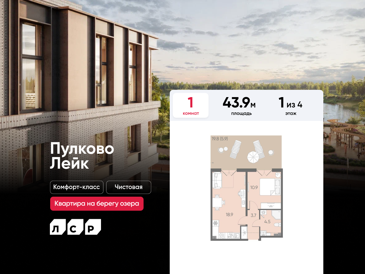 Евро однокомнатные квартиры в ЖК Пулково Lake (Лэйк)