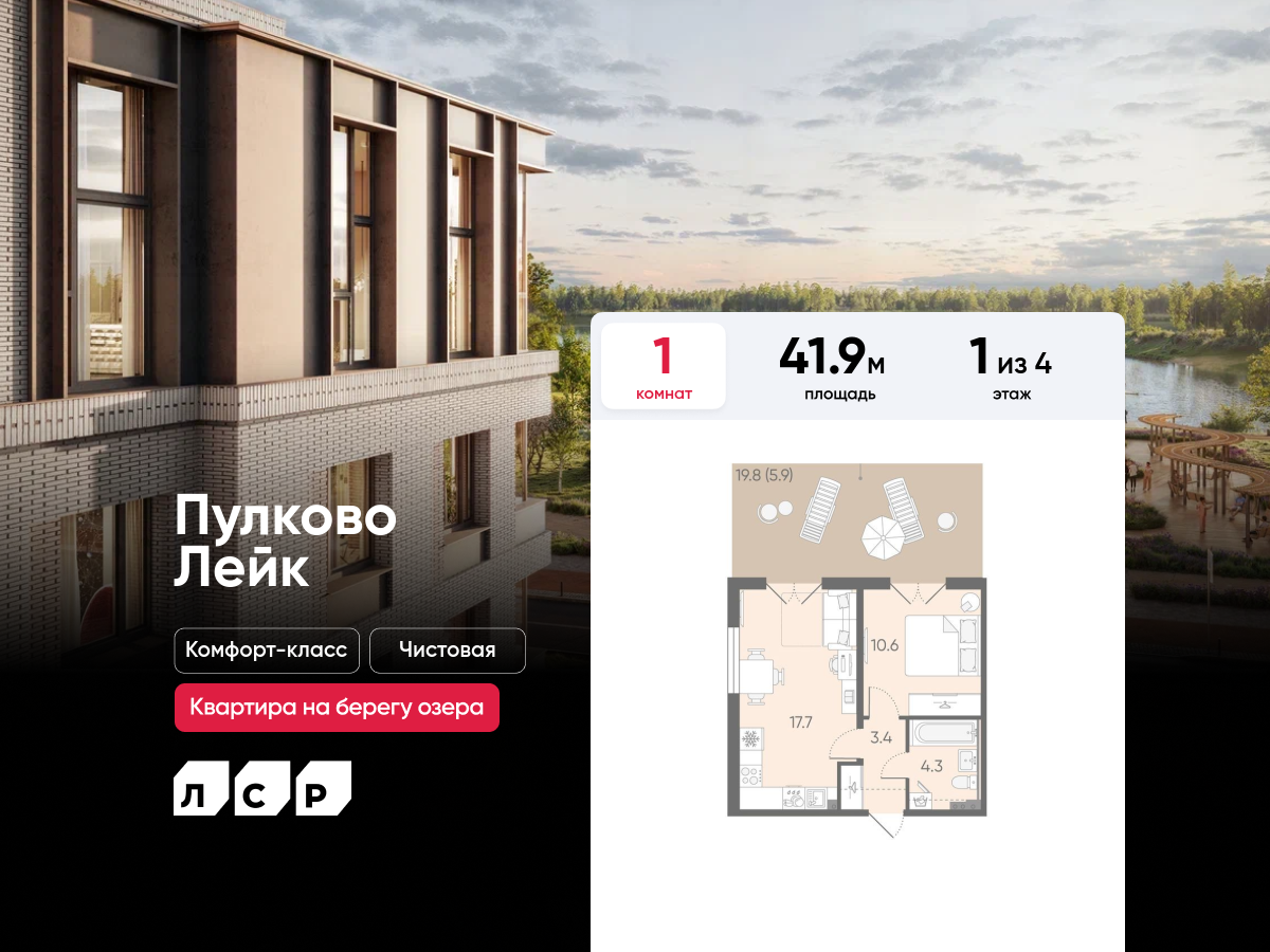 Евро однокомнатные квартиры в ЖК Пулково Lake (Лэйк)