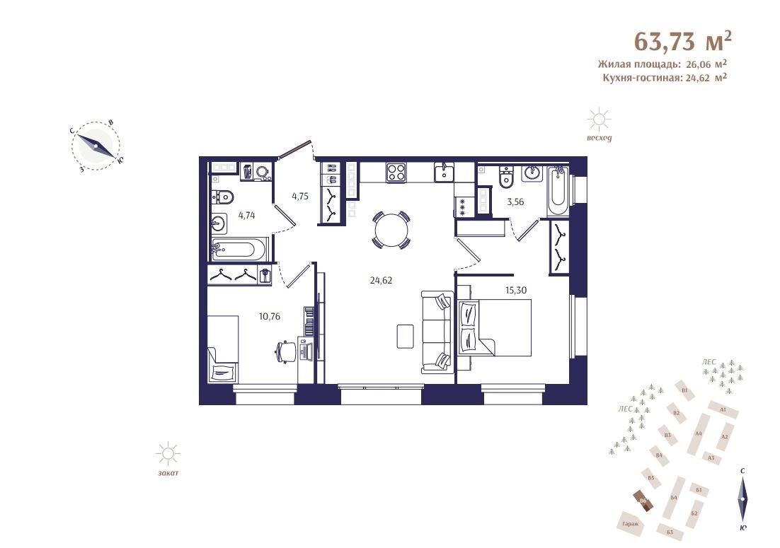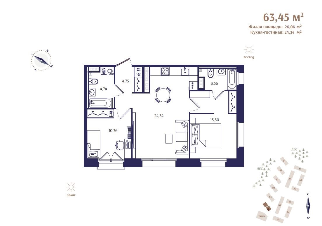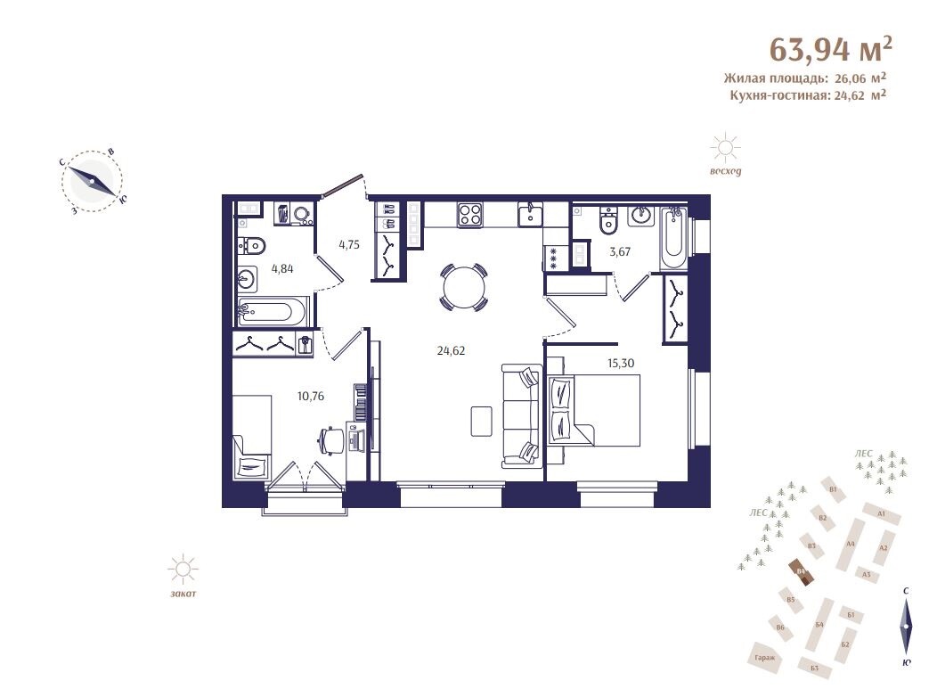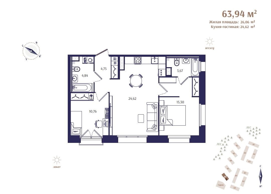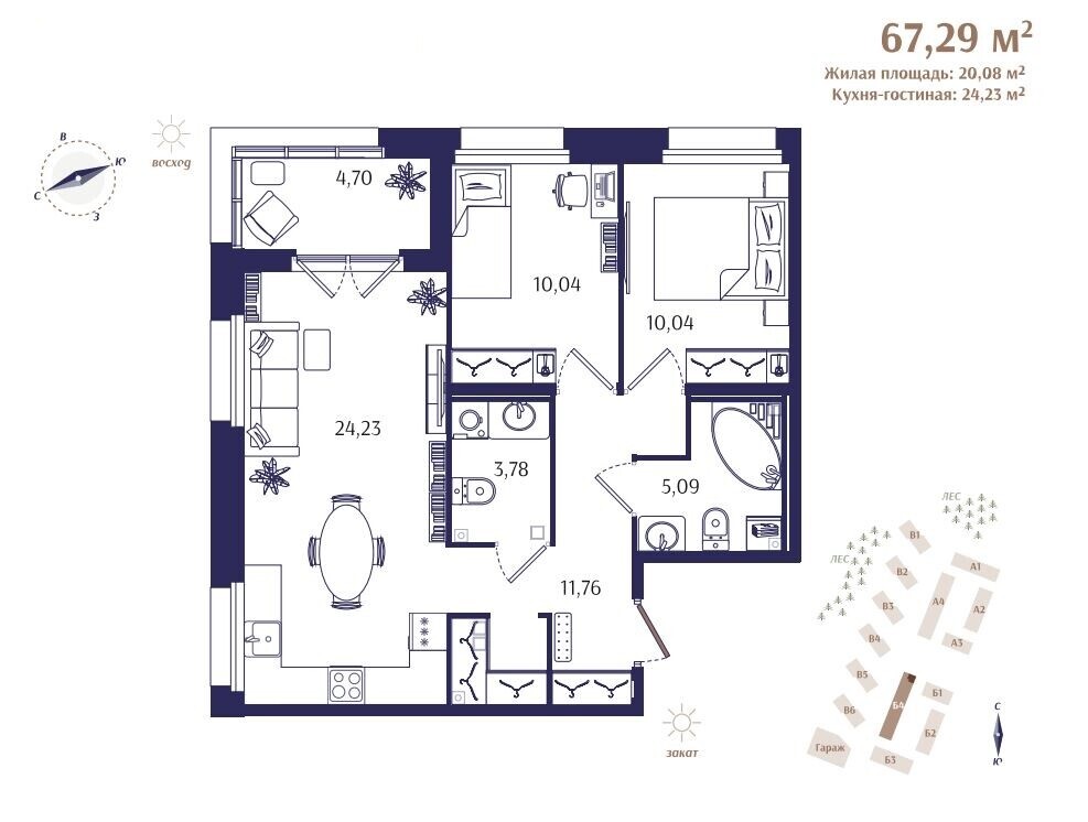 В первую очередь строительства войдут 4 жилых дома, в которых будет расположено всего 177 квартир. Камерный формат и малое количество квартир на этажах помогут создать атмосферу приватной загородной резиденции