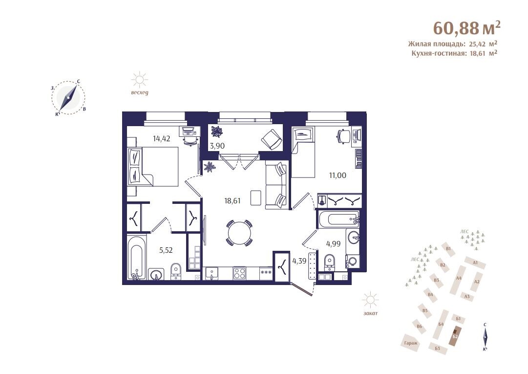 В первую очередь строительства войдут 4 жилых дома, в которых будет расположено всего 177 квартир. Камерный формат и малое количество квартир на этажах помогут создать атмосферу приватной загородной резиденции