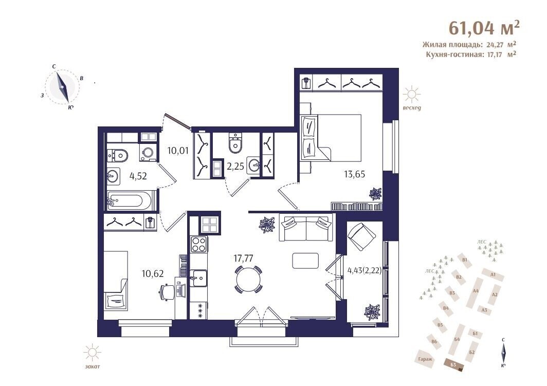 В первую очередь строительства войдут 4 жилых дома, в которых будет расположено всего 177 квартир. Камерный формат и малое количество квартир на этажах помогут создать атмосферу приватной загородной резиденции