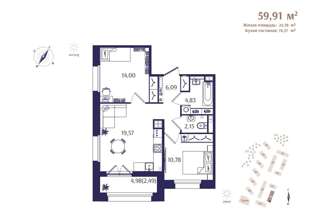 Двухкомнатные квартиры в ЖК Ranta Residence (Ранта Резиденс)