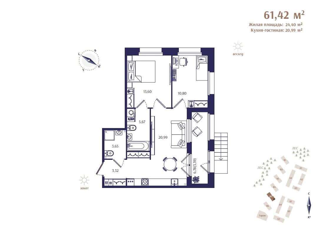 Двухкомнатные квартиры в ЖК Ranta Residence (Ранта Резиденс)