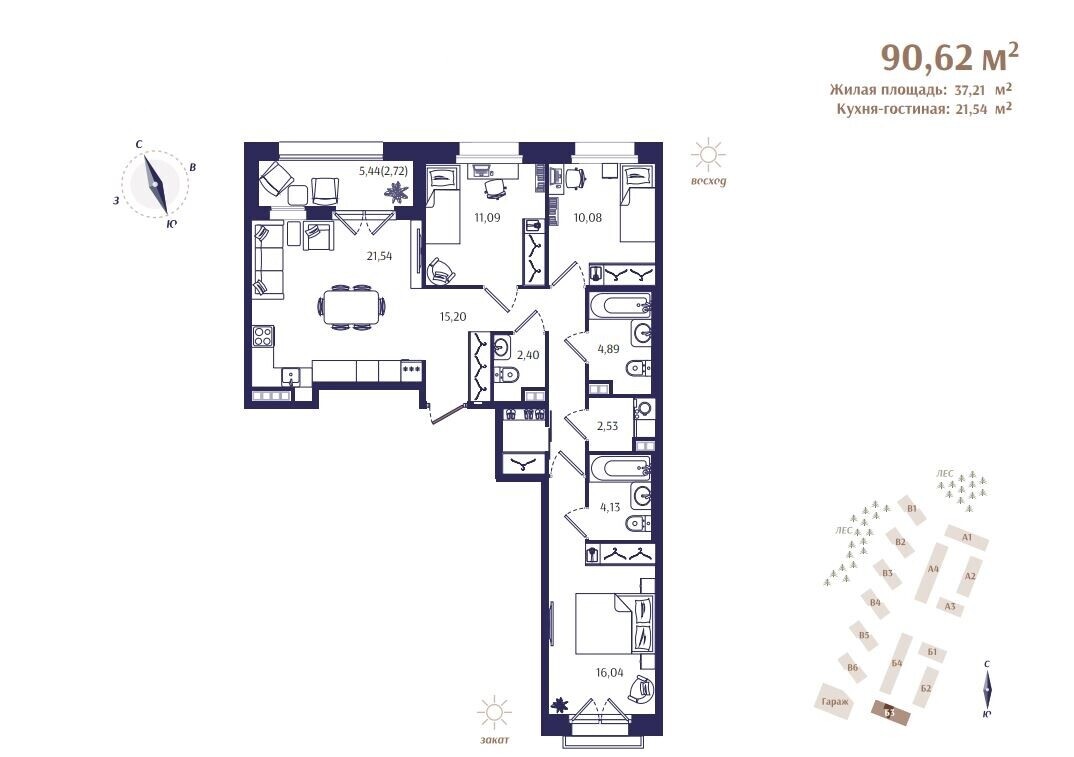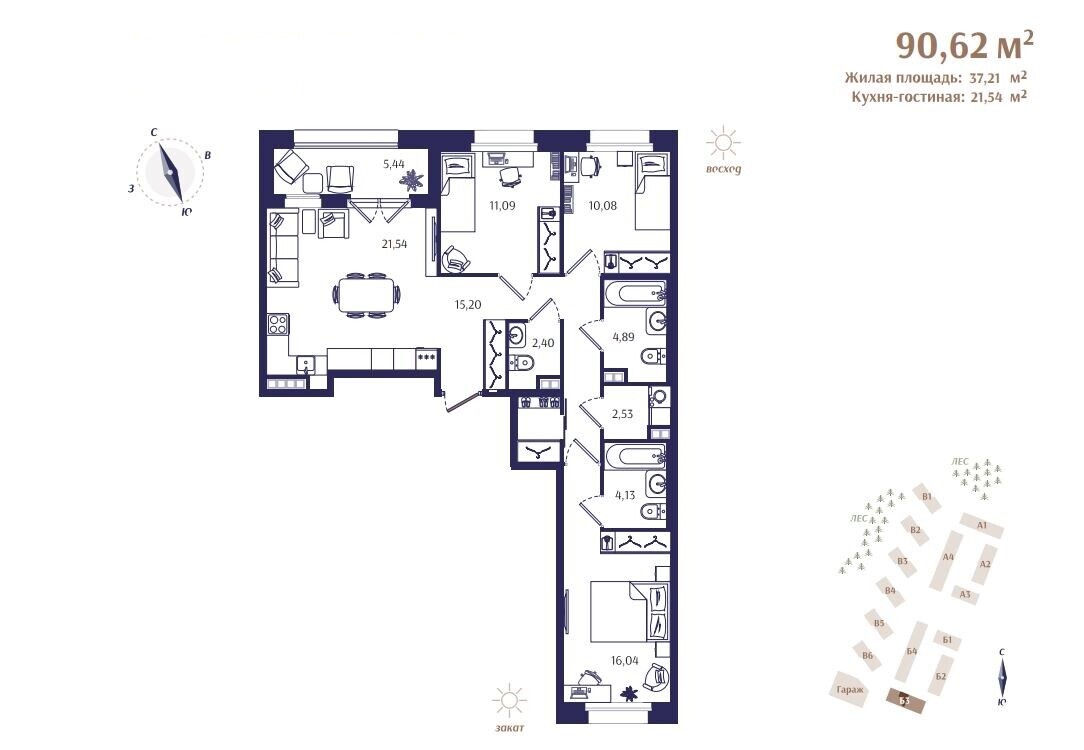 Трехкомнатные квартиры в ЖК Ranta Residence (Ранта Резиденс)