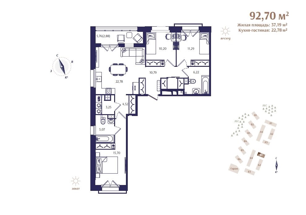 В первую очередь строительства войдут 4 жилых дома, в которых будет расположено всего 177 квартир. Камерный формат и малое количество квартир на этажах помогут создать атмосферу приватной загородной резиденции