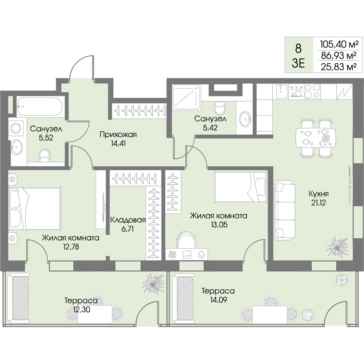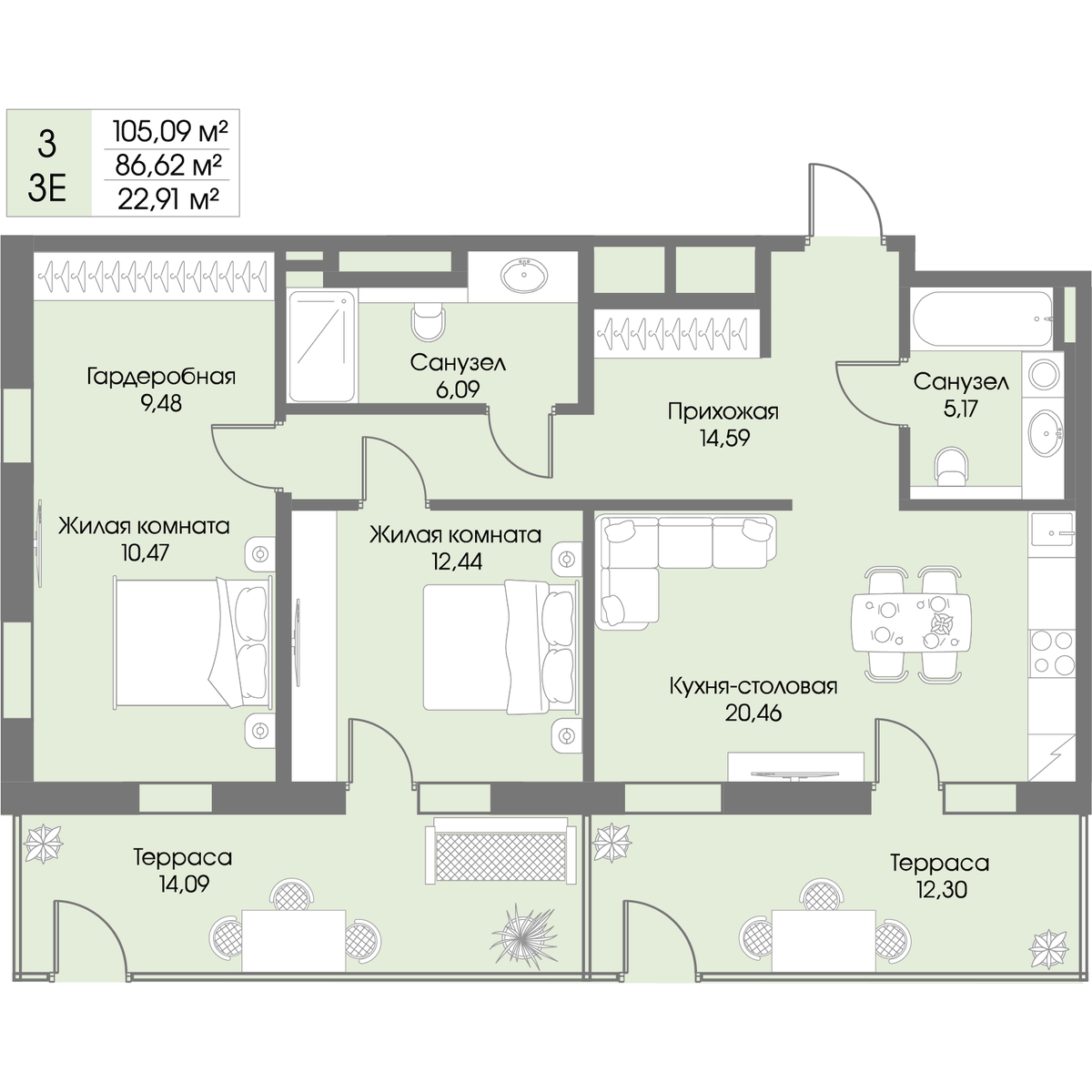 - Цена за м2 1 200 000 руб