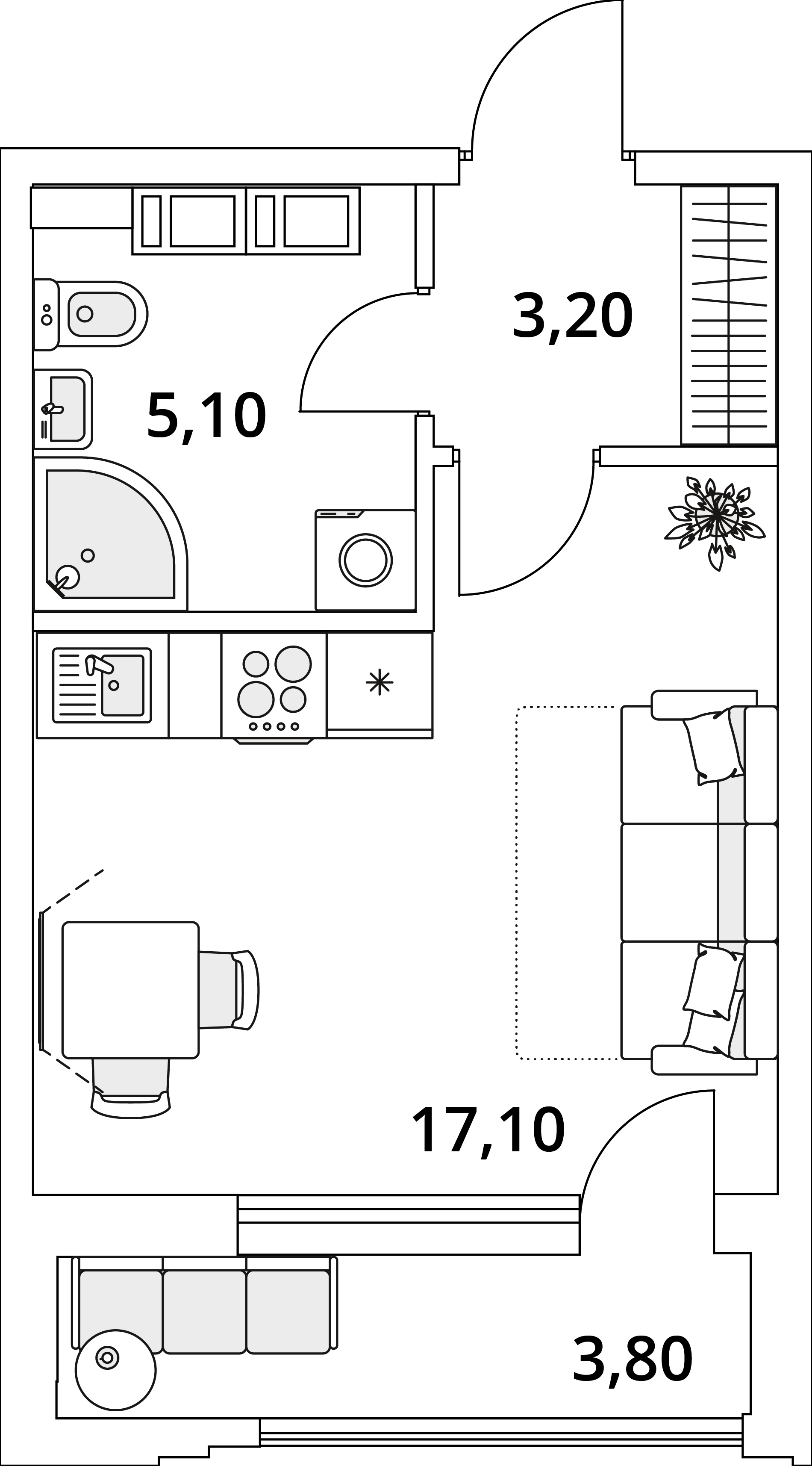 Доступны квартиры разной планировки и площади. Жильцы смогут выбрать из трех вариантов отделки. Чистовую дизайнерскую стоит взять тем, кто хочет поскорее заселиться. Предчистовая (white box) подойдет желающим выбрать цвет стен и плитки — самые грязные и шумные работы выполнит застройщик. А квартира без отделки — хороший вариант для тех, кто хочет сделать масштабный ремонт самостоятельно.