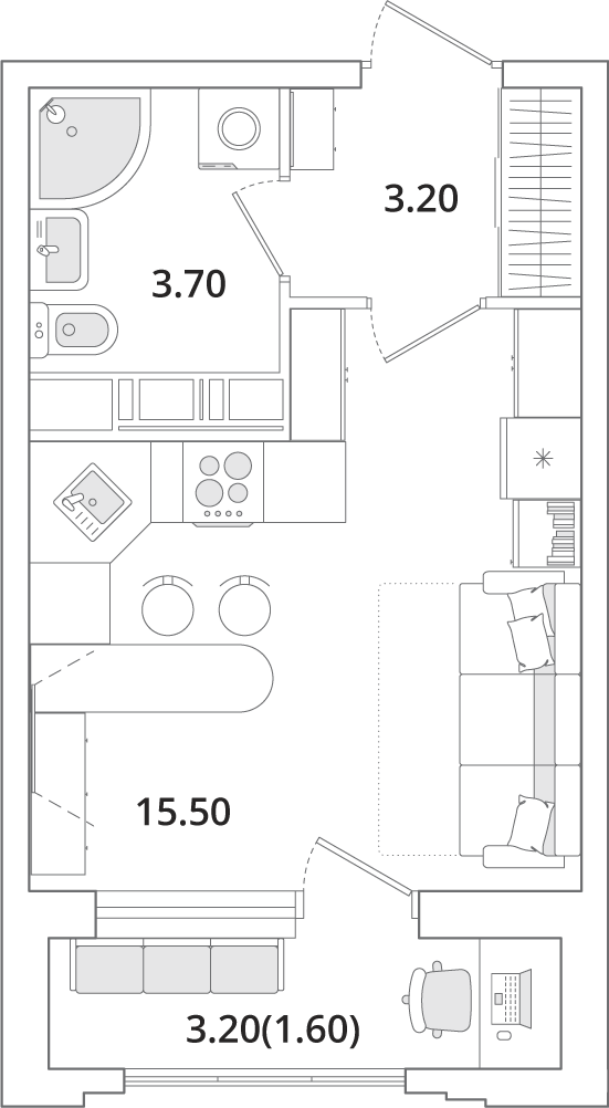 Доступны квартиры разной планировки и площади. Жильцы смогут выбрать из трех вариантов отделки. Чистовую дизайнерскую стоит взять тем, кто хочет поскорее заселиться. Предчистовая (white box) подойдет желающим выбрать цвет стен и плитки — самые грязные и шумные работы выполнит застройщик. А квартира без отделки — хороший вариант для тех, кто хочет сделать масштабный ремонт самостоятельно.
