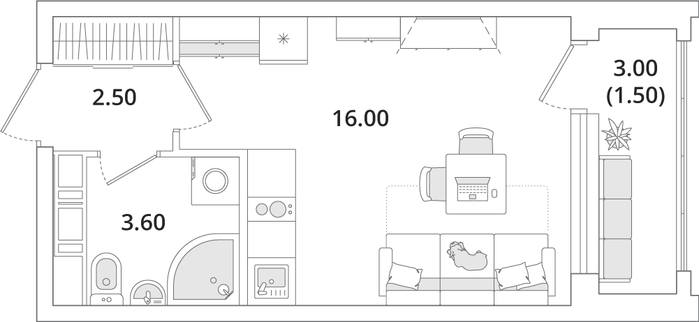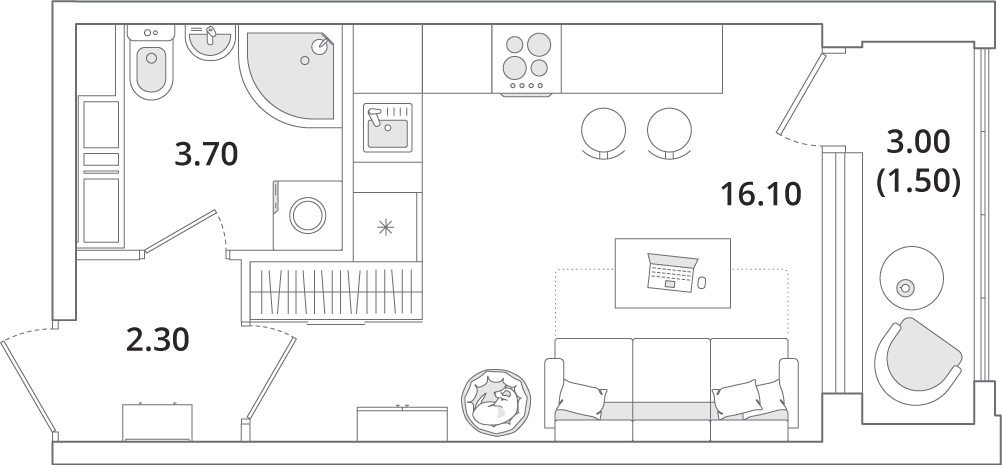Доступны квартиры разной планировки и площади. Жильцы смогут выбрать из трех вариантов отделки. Чистовую дизайнерскую стоит взять тем, кто хочет поскорее заселиться. Предчистовая (white box) подойдет желающим выбрать цвет стен и плитки — самые грязные и шумные работы выполнит застройщик. А квартира без отделки — хороший вариант для тех, кто хочет сделать масштабный ремонт самостоятельно.