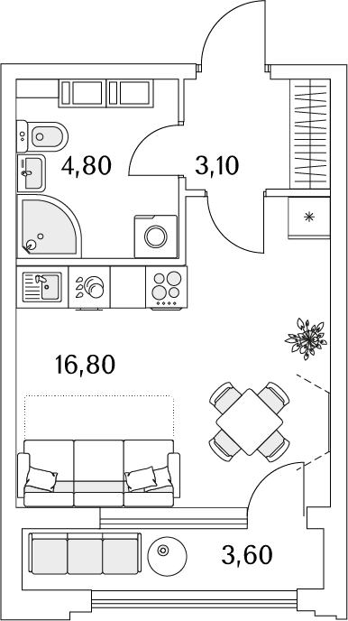 Доступны квартиры разной планировки и площади. Жильцы смогут выбрать из трех вариантов отделки. Чистовую дизайнерскую стоит взять тем, кто хочет поскорее заселиться. Предчистовая (white box) подойдет желающим выбрать цвет стен и плитки — самые грязные и шумные работы выполнит застройщик. А квартира без отделки — хороший вариант для тех, кто хочет сделать масштабный ремонт самостоятельно.