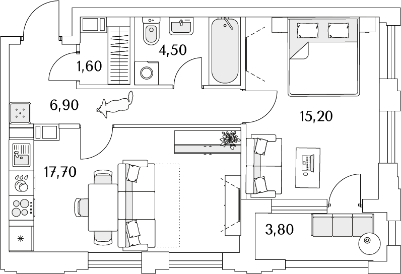 Доступны квартиры разной планировки и площади. Жильцы смогут выбрать из трех вариантов отделки. Чистовую дизайнерскую стоит взять тем, кто хочет поскорее заселиться. Предчистовая (white box) подойдет желающим выбрать цвет стен и плитки — самые грязные и шумные работы выполнит застройщик. А квартира без отделки — хороший вариант для тех, кто хочет сделать масштабный ремонт самостоятельно.