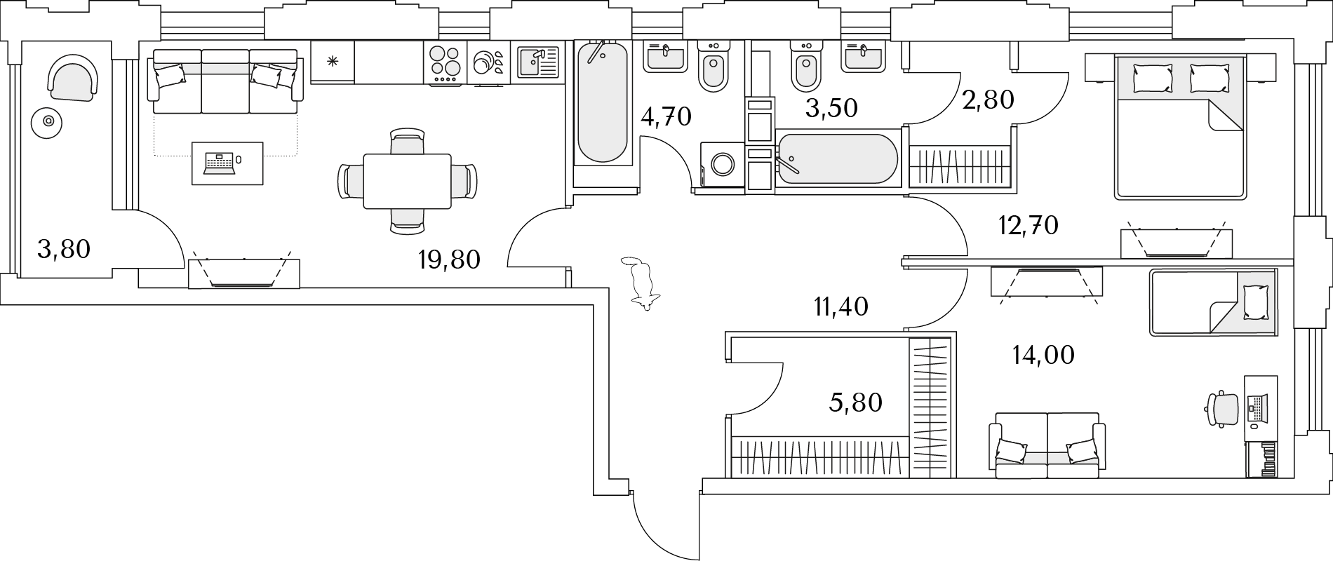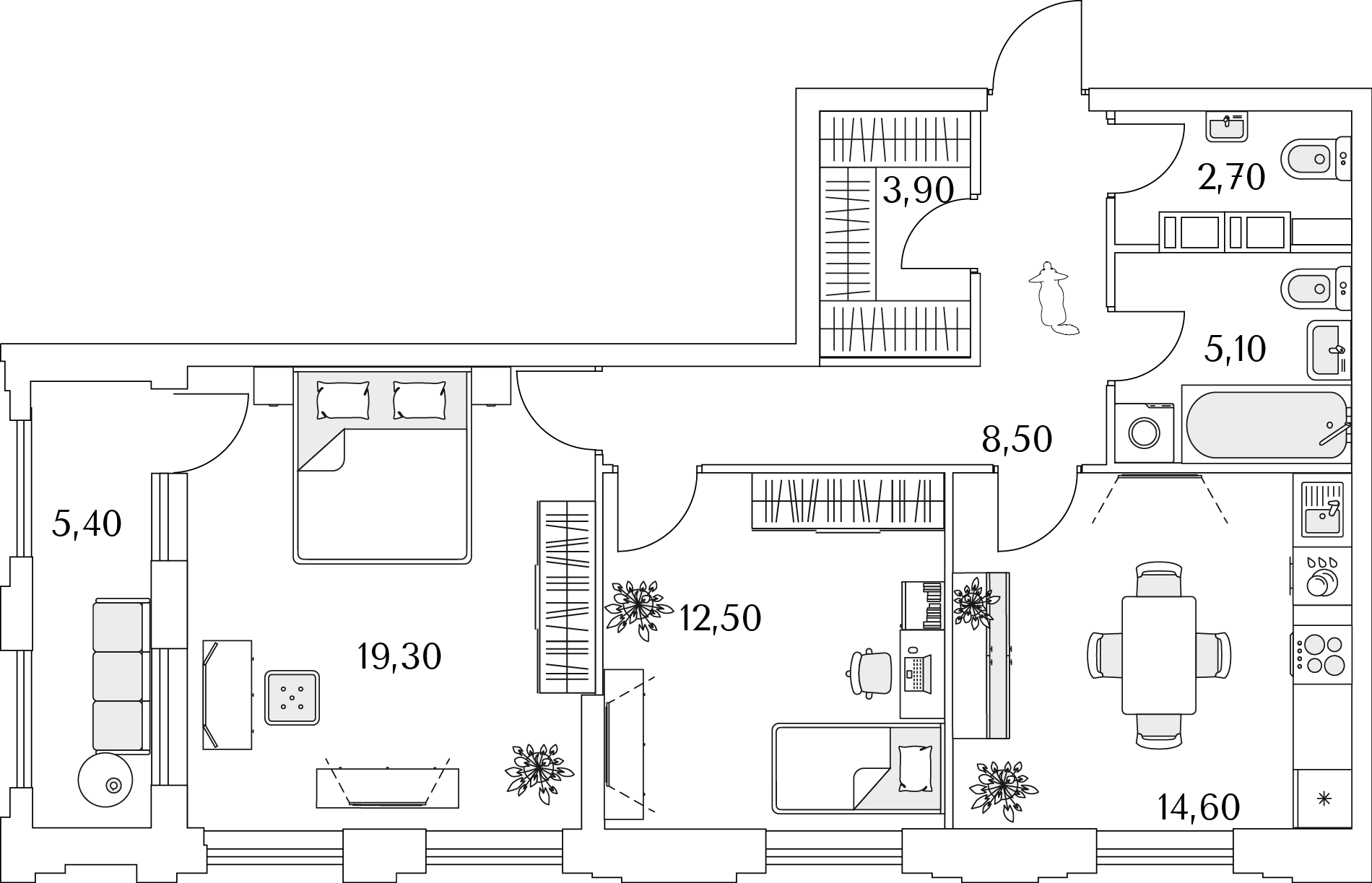 Доступны квартиры разной планировки и площади. Жильцы смогут выбрать из трех вариантов отделки. Чистовую дизайнерскую стоит взять тем, кто хочет поскорее заселиться. Предчистовая (white box) подойдет желающим выбрать цвет стен и плитки — самые грязные и шумные работы выполнит застройщик. А квартира без отделки — хороший вариант для тех, кто хочет сделать масштабный ремонт самостоятельно.