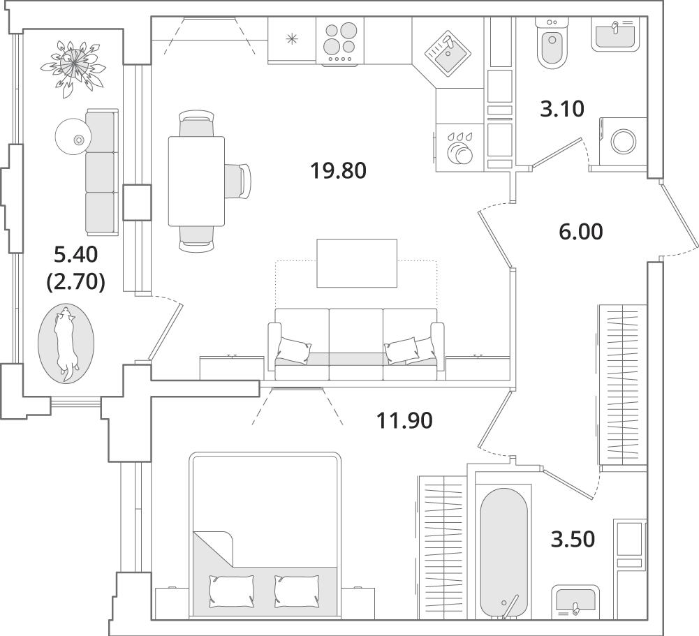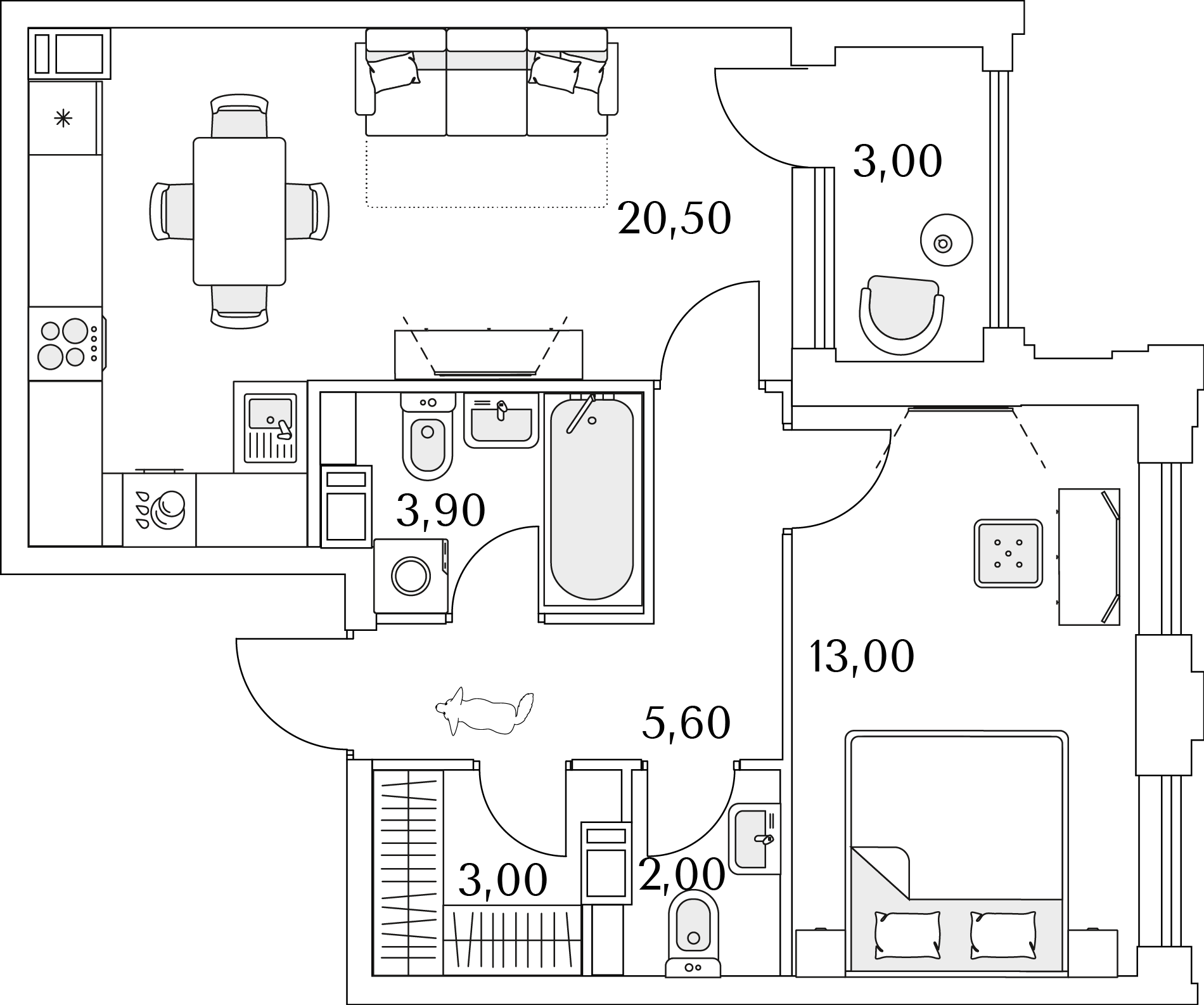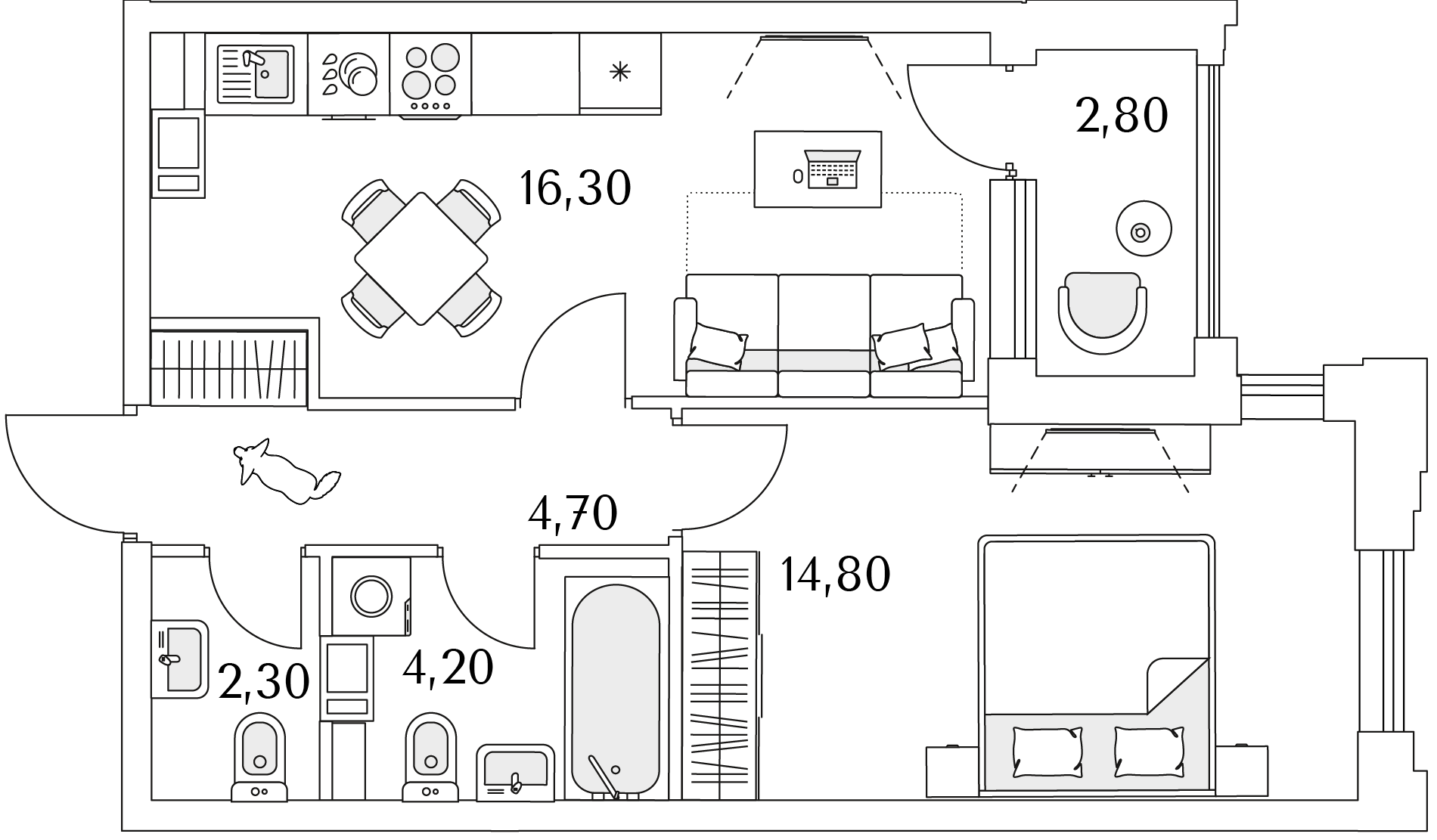 Доступны квартиры разной планировки и площади. Жильцы смогут выбрать из трех вариантов отделки. Чистовую дизайнерскую стоит взять тем, кто хочет поскорее заселиться. Предчистовая (white box) подойдет желающим выбрать цвет стен и плитки — самые грязные и шумные работы выполнит застройщик. А квартира без отделки — хороший вариант для тех, кто хочет сделать масштабный ремонт самостоятельно.