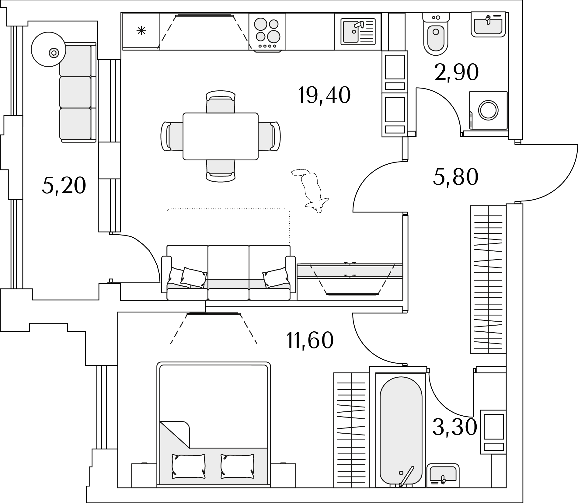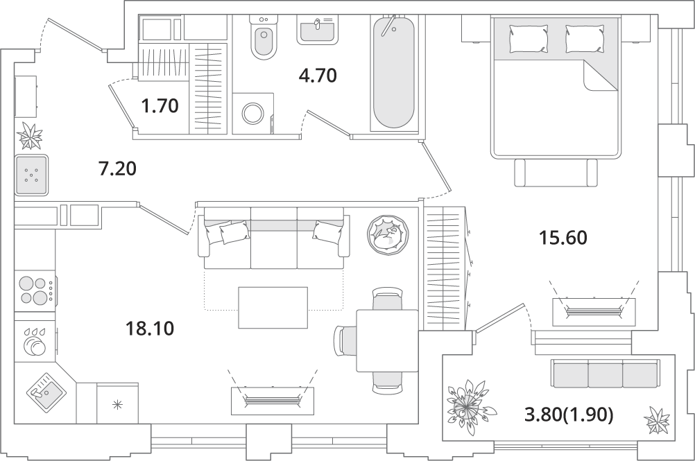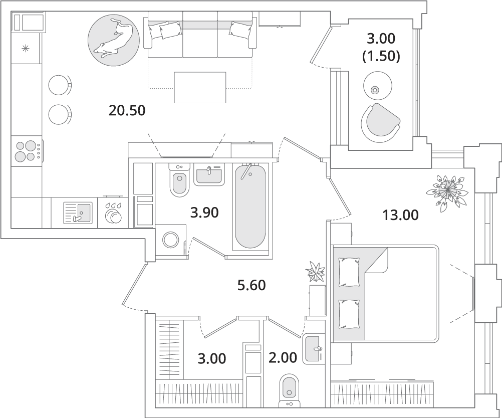 Доступны квартиры разной планировки и площади. Жильцы смогут выбрать из трех вариантов отделки. Чистовую дизайнерскую стоит взять тем, кто хочет поскорее заселиться. Предчистовая (white box) подойдет желающим выбрать цвет стен и плитки — самые грязные и шумные работы выполнит застройщик. А квартира без отделки — хороший вариант для тех, кто хочет сделать масштабный ремонт самостоятельно.
