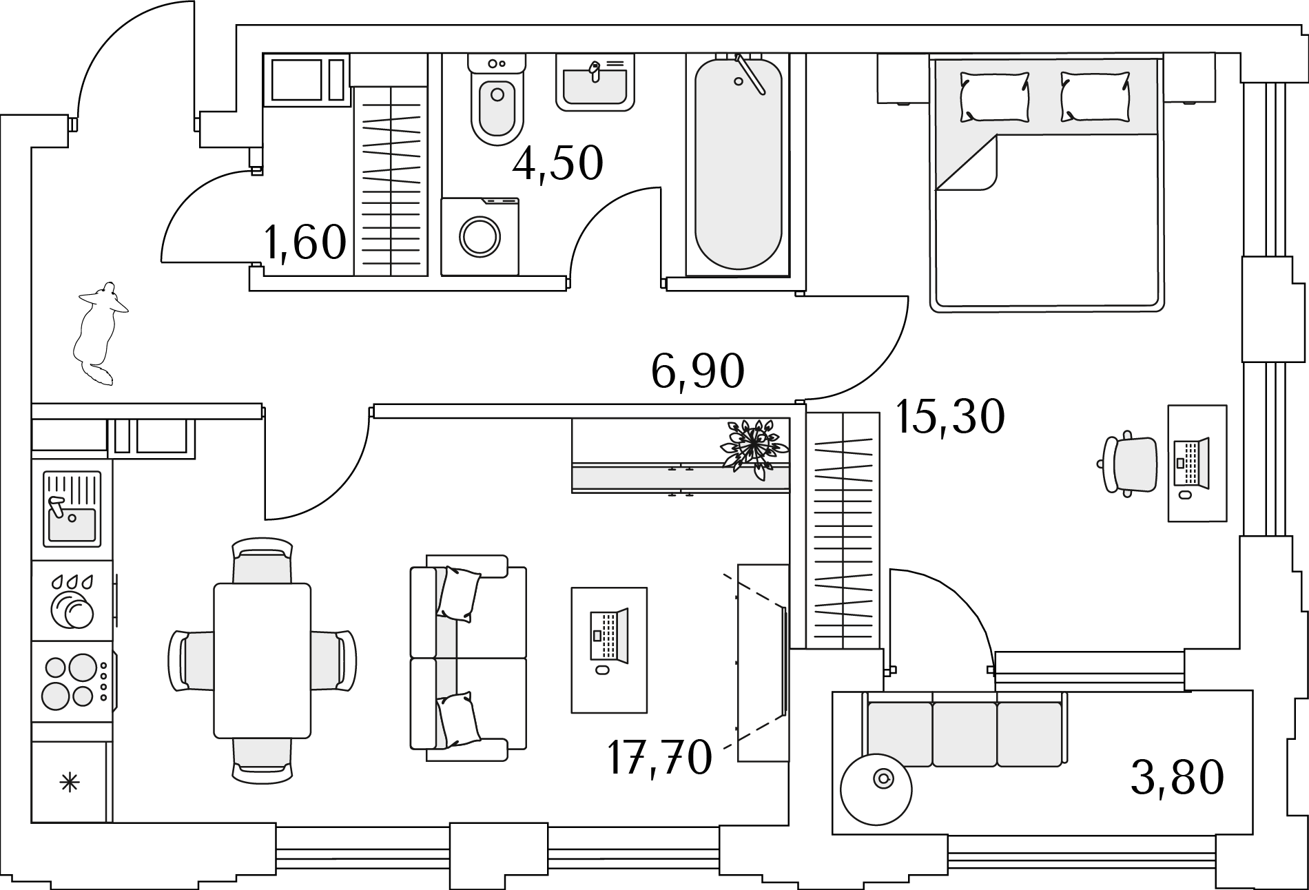 Доступны квартиры разной планировки и площади. Жильцы смогут выбрать из трех вариантов отделки. Чистовую дизайнерскую стоит взять тем, кто хочет поскорее заселиться. Предчистовая (white box) подойдет желающим выбрать цвет стен и плитки — самые грязные и шумные работы выполнит застройщик. А квартира без отделки — хороший вариант для тех, кто хочет сделать масштабный ремонт самостоятельно.
