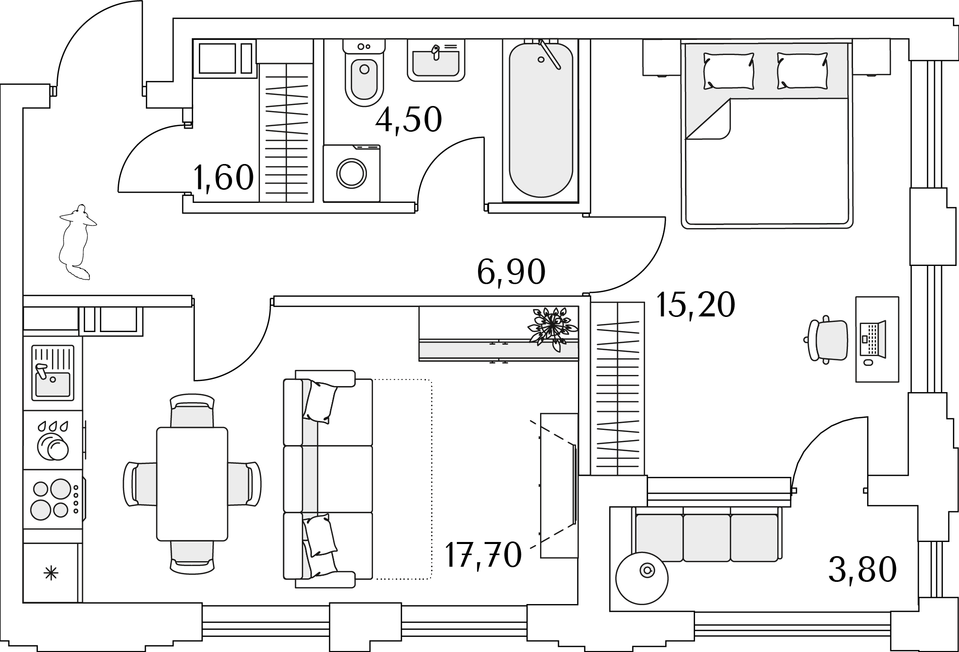 Евро 1-комнатная (47.9м2)