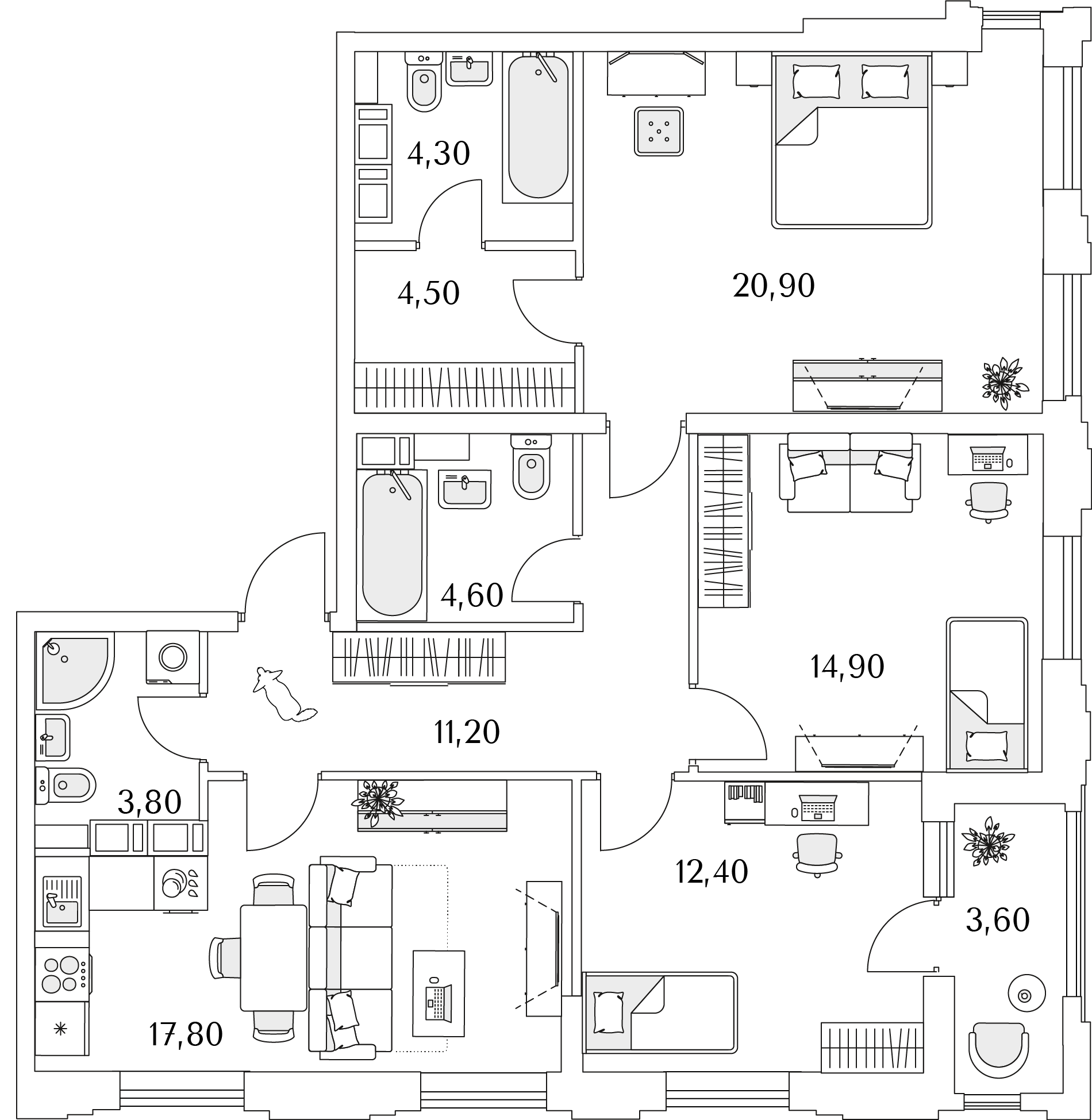 Евро трехкомнатные квартиры в ЖК Тайм Сквер
