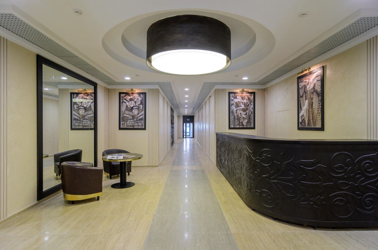 Первый этаж отдан под коммерческие помещения. Здесь расположились заведения общественного питания, торговые точки и офисы. Всего площадь подобных помещений составила 600 квадратных метров.
