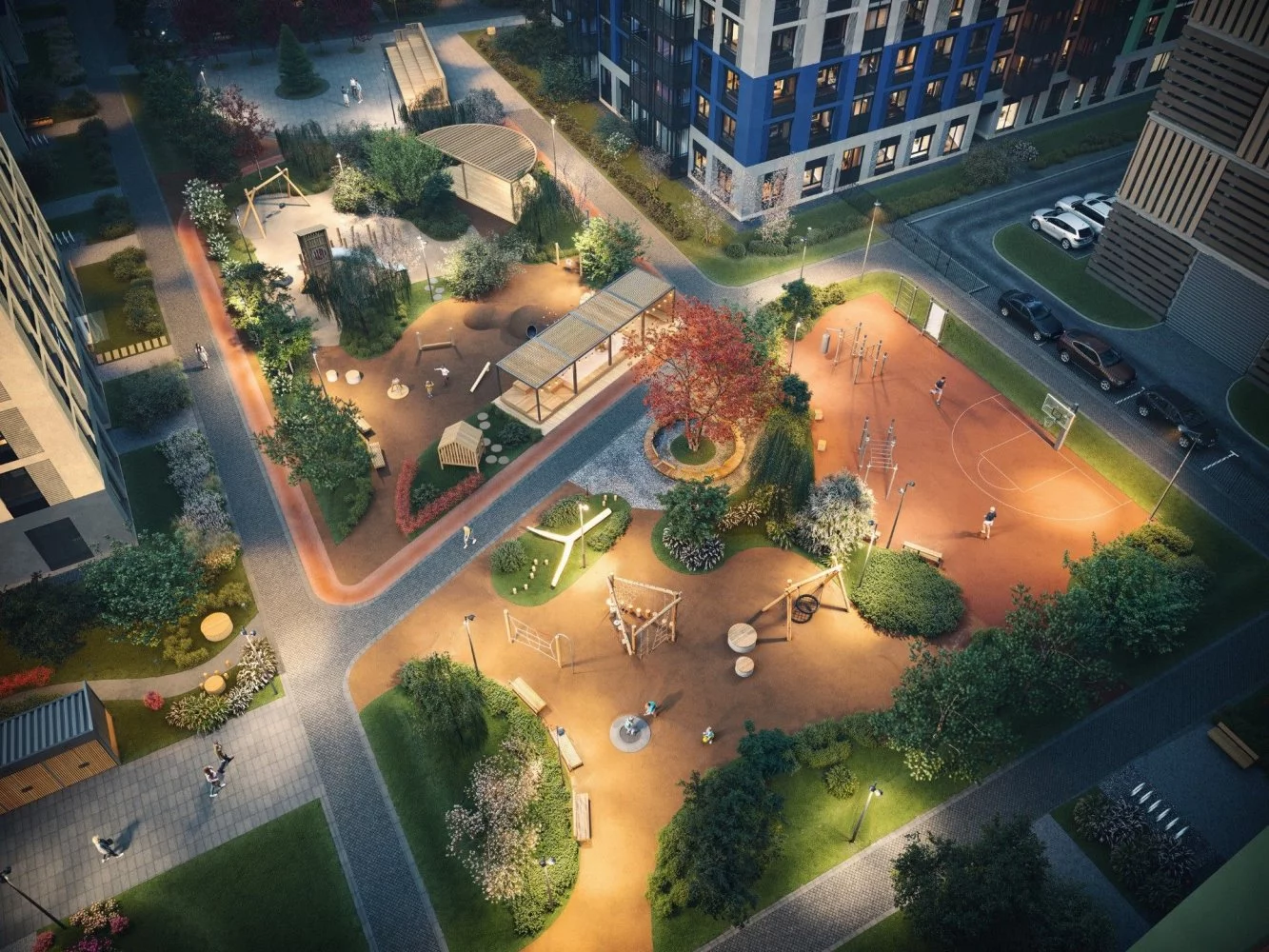 Опции, которые предлагает застройщик для проекта ЖК Янила Форест: гостевая парковка, детские и спортивные площадки, закрытый двор без машин, видеонаблюдение, коммерческие помещения на первом этаже.