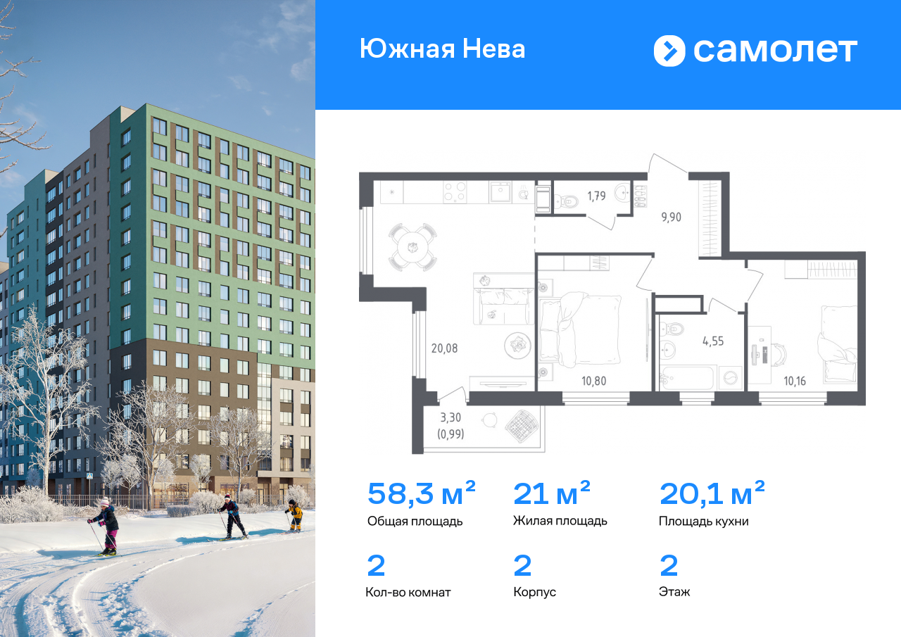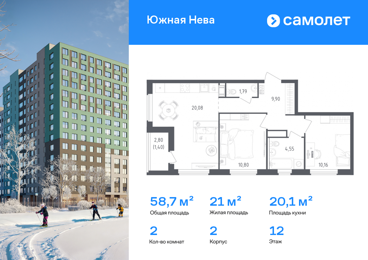 Евро двухкомнатные квартиры в ЖК Южная Нева