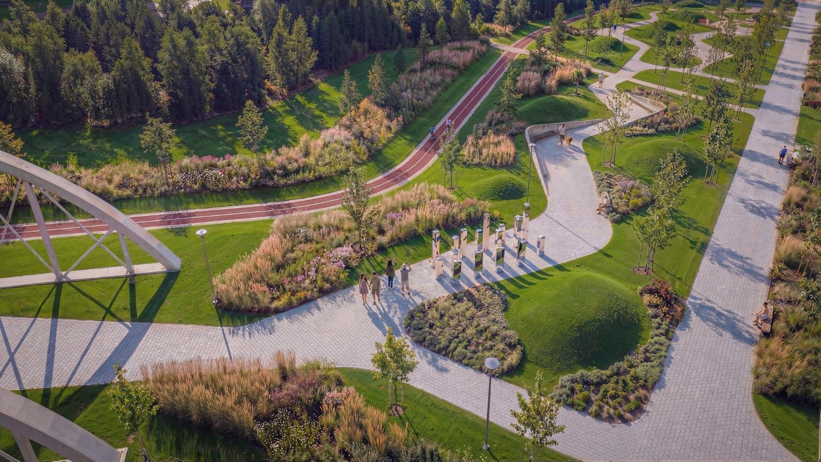 Опции, которые предлагает застройщик для проекта ЖК Зеркальный ручей: подземная и гостевая парковки, детский сад, школа, поликлиника, детские и спортивные площадки, коммерческие помещения на первом этаже, видеонаблюдение, система «умный дом».