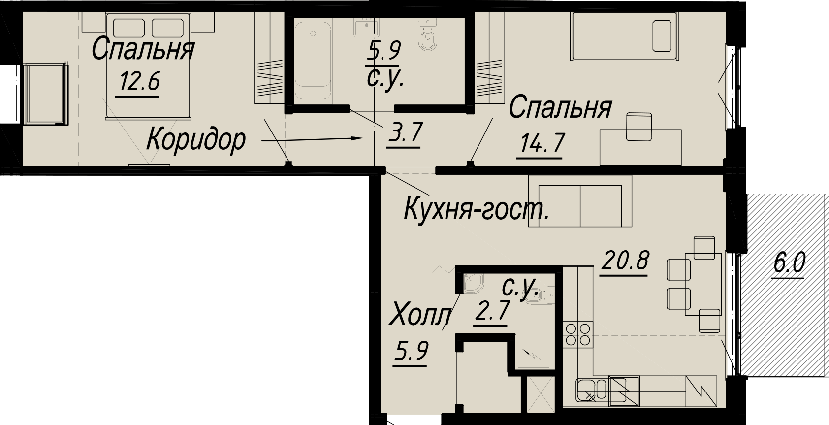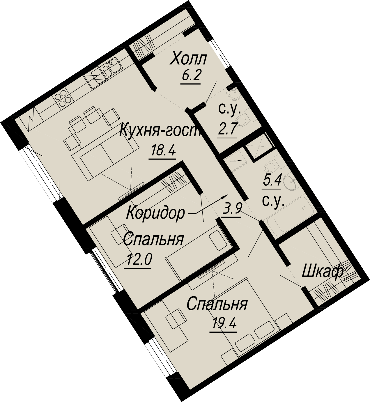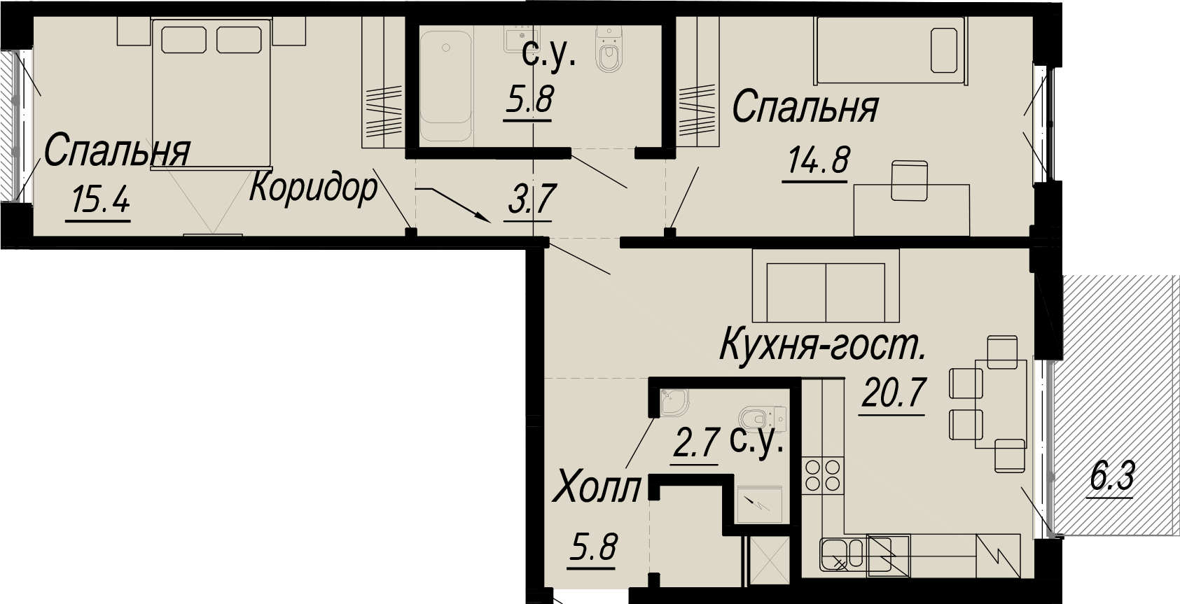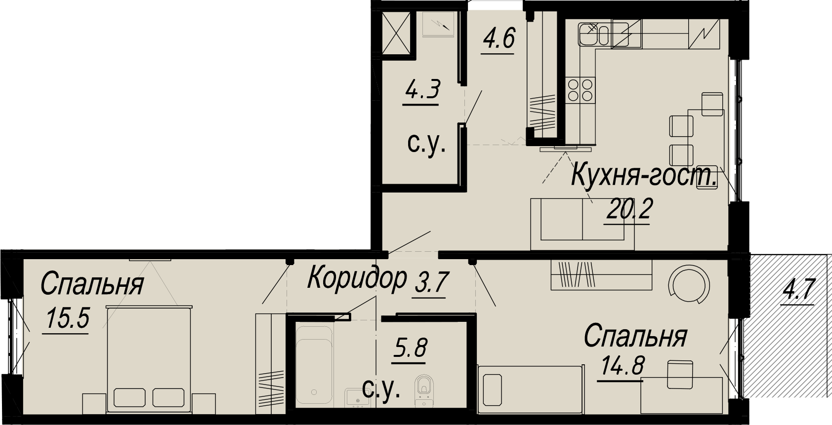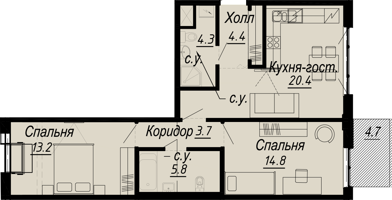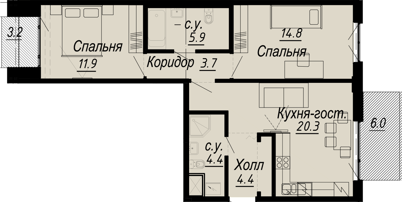 2-комнатная (68.8м2)