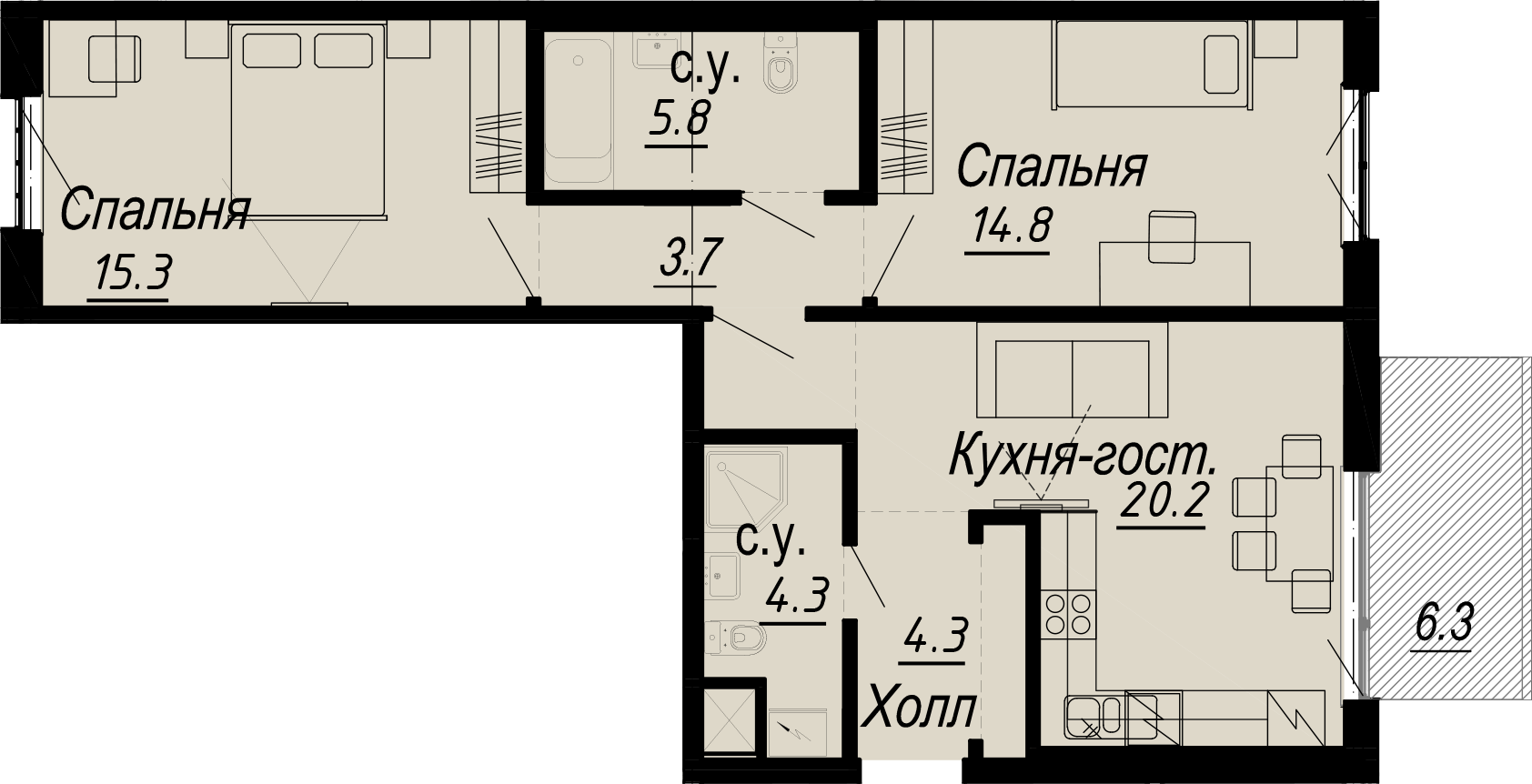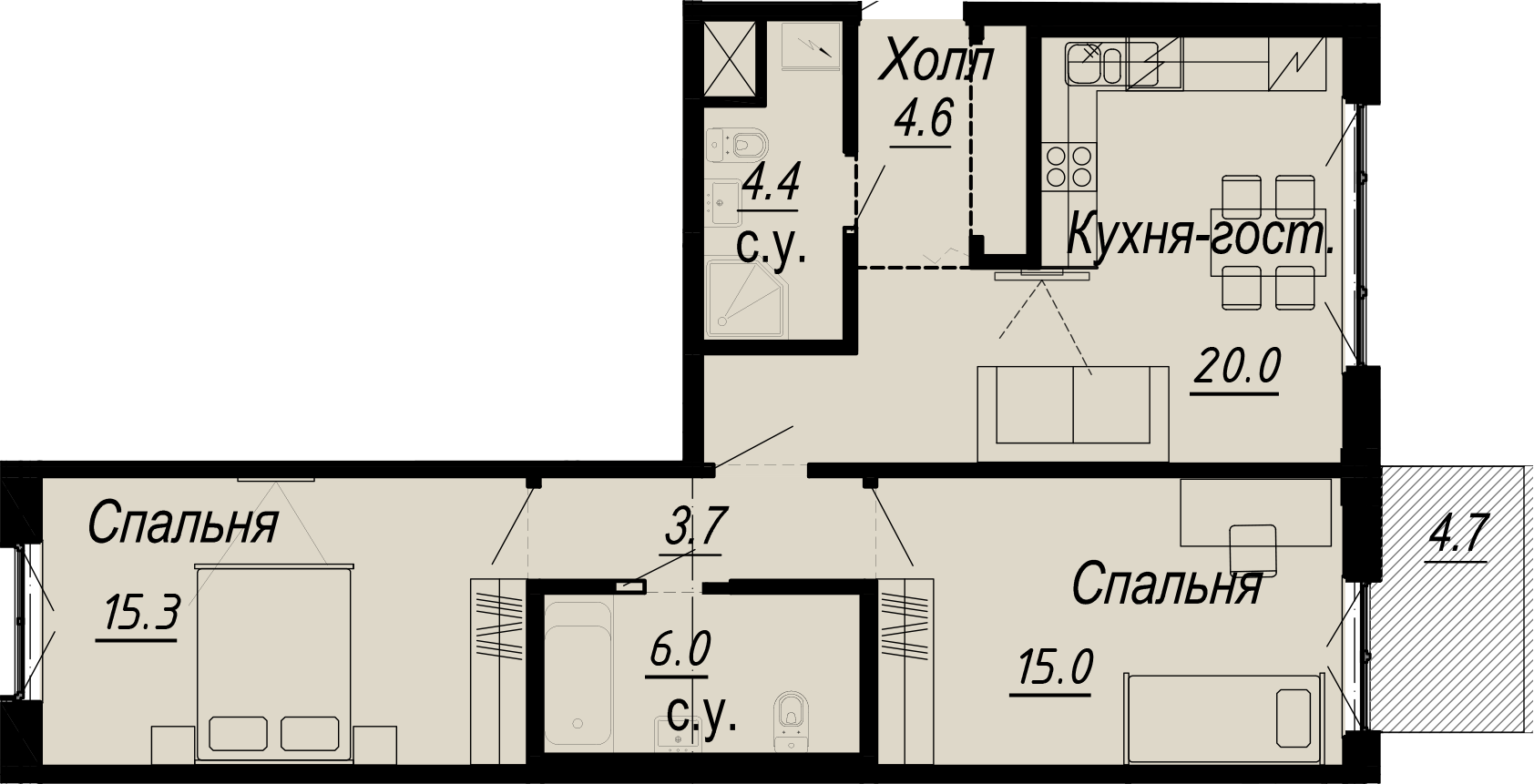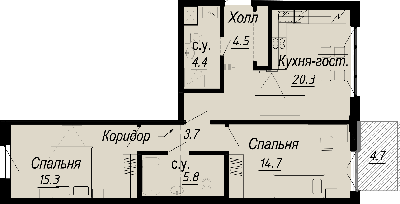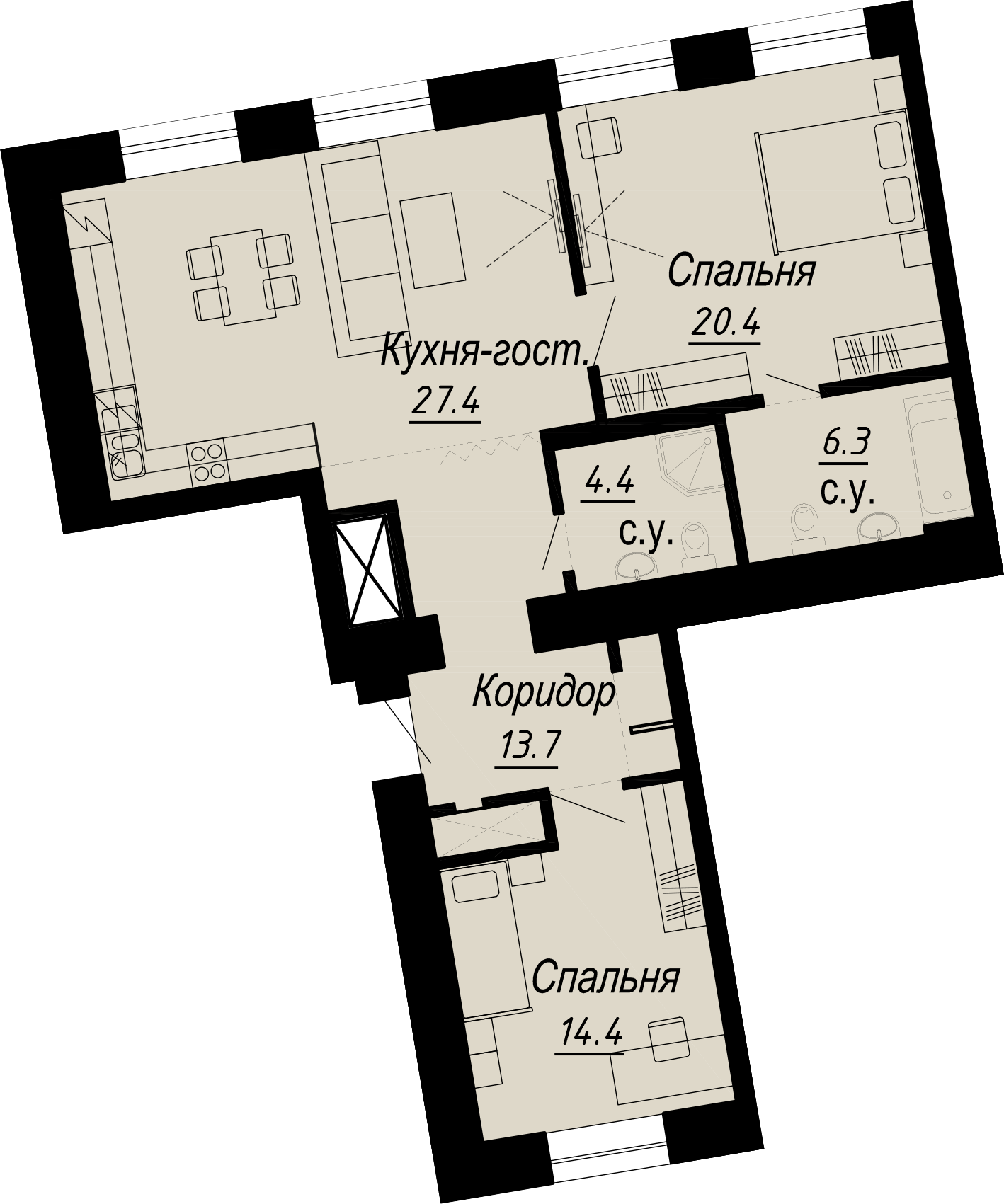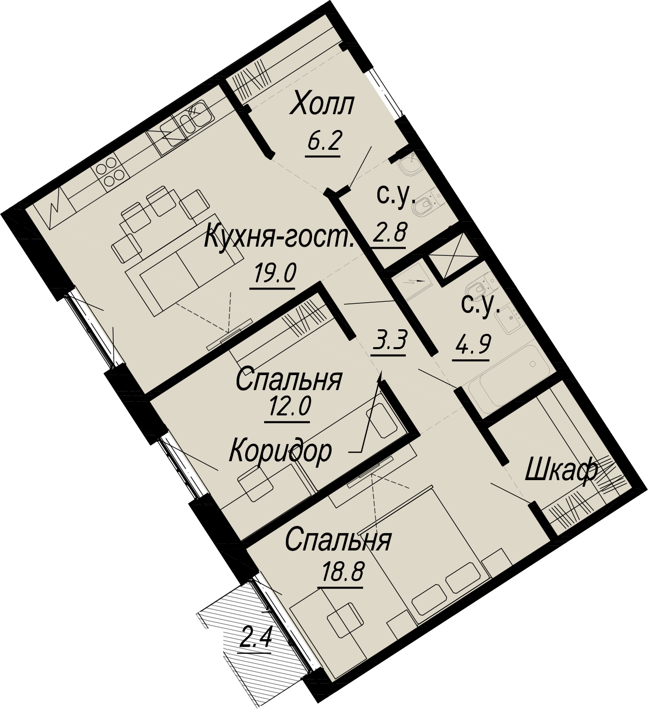 2-комнатная (68.8м2)