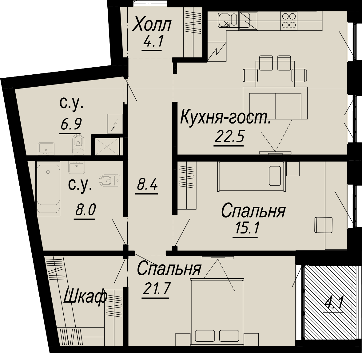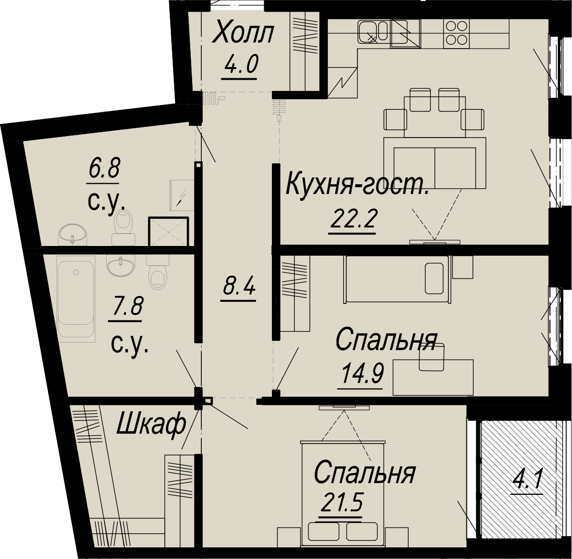 2-комнатная (86.6м2)