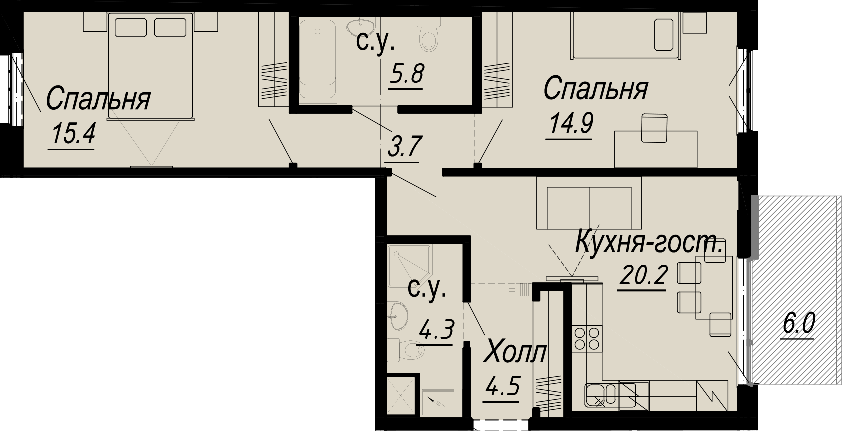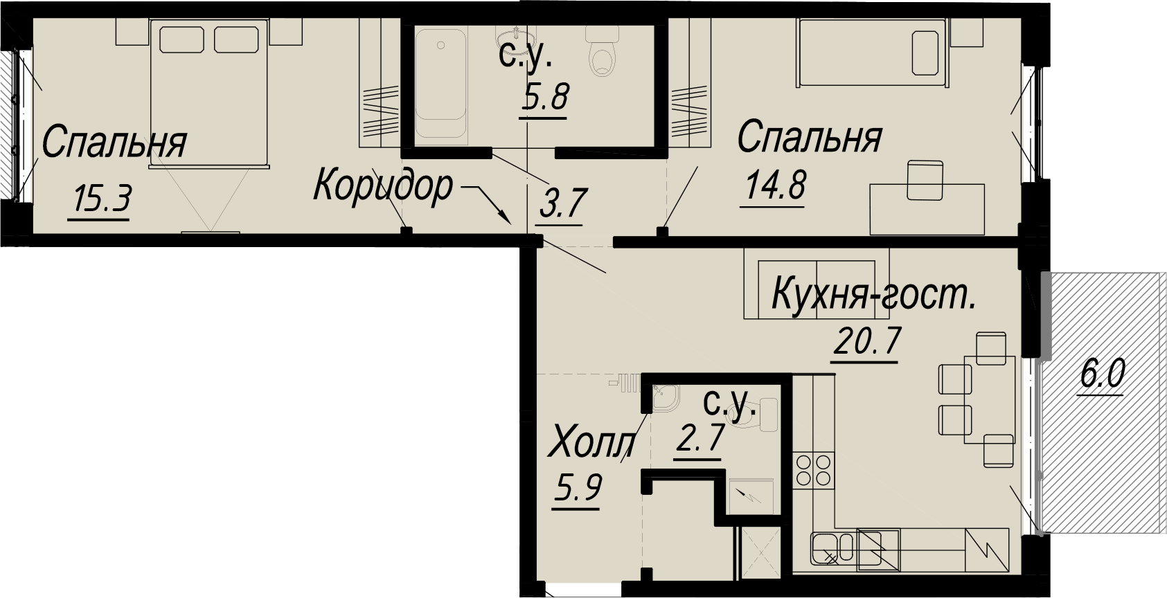 2-комнатная (58м2)