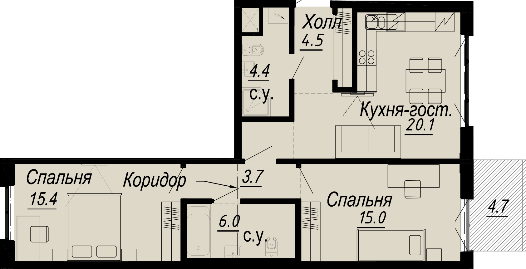 2-комнатная (70.7м2)