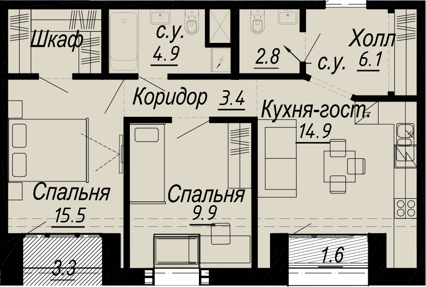 2-комнатная (61.3м2)