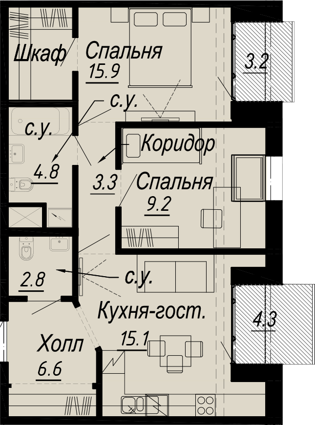 2-комнатная (67.2м2)