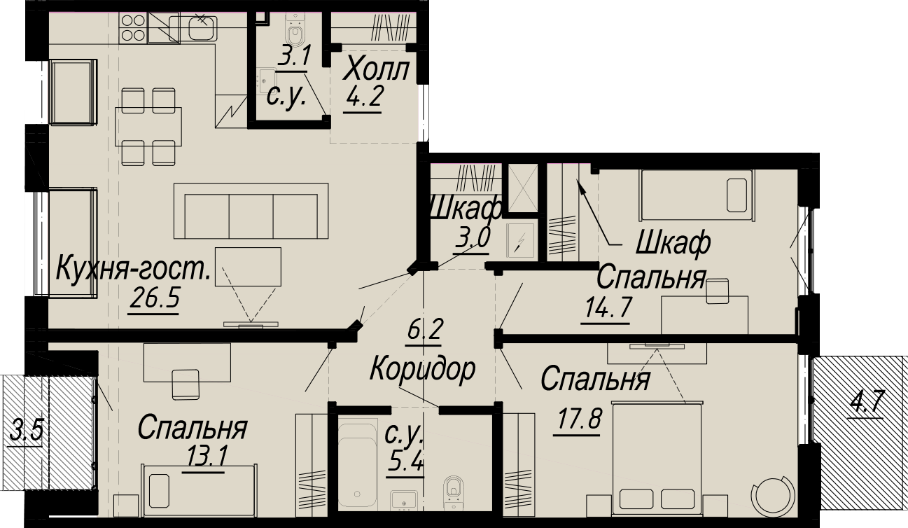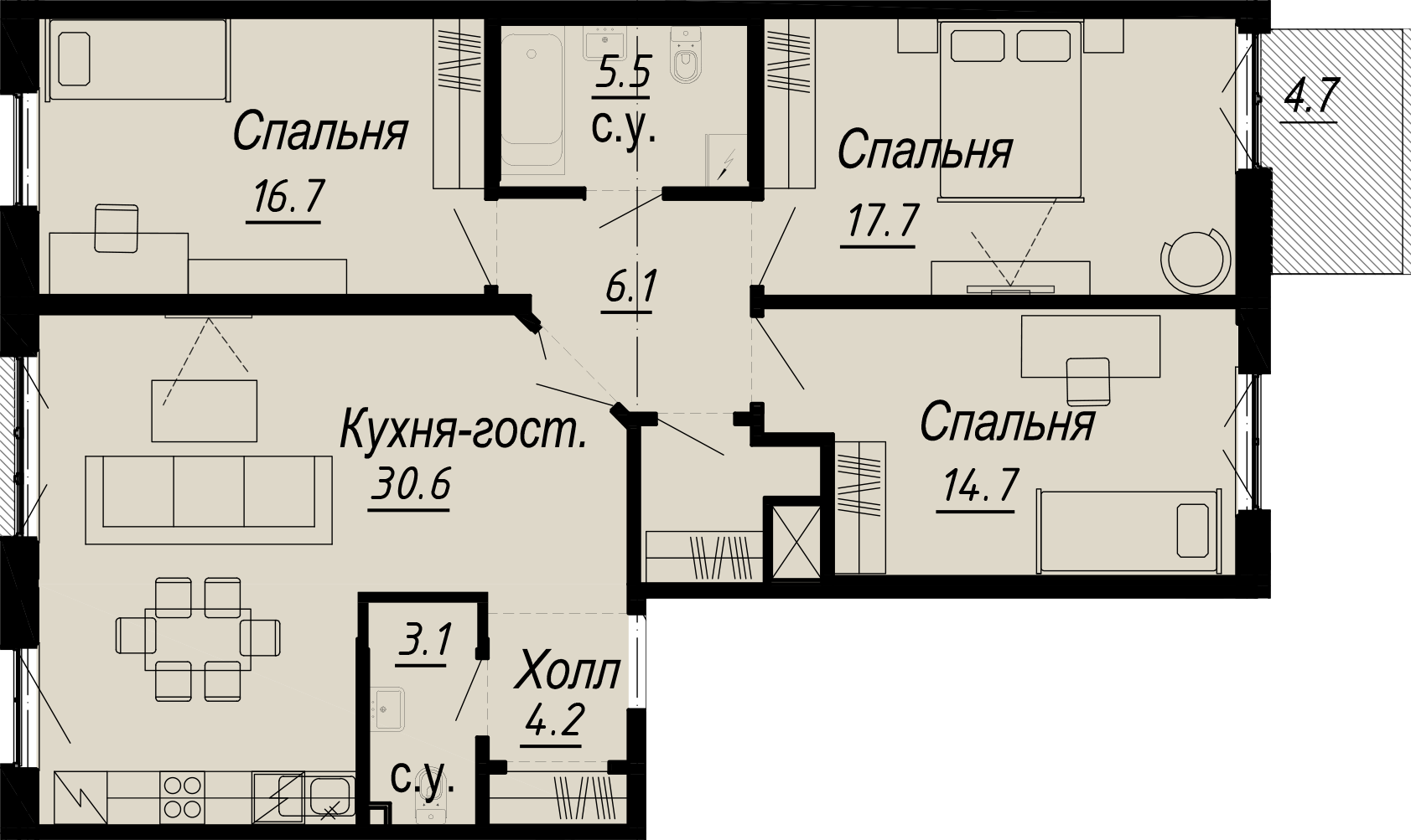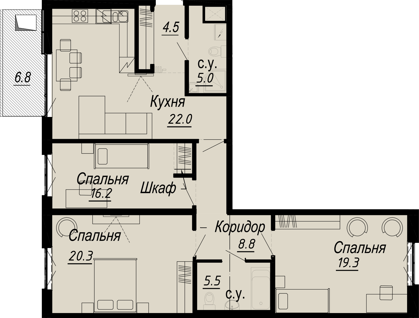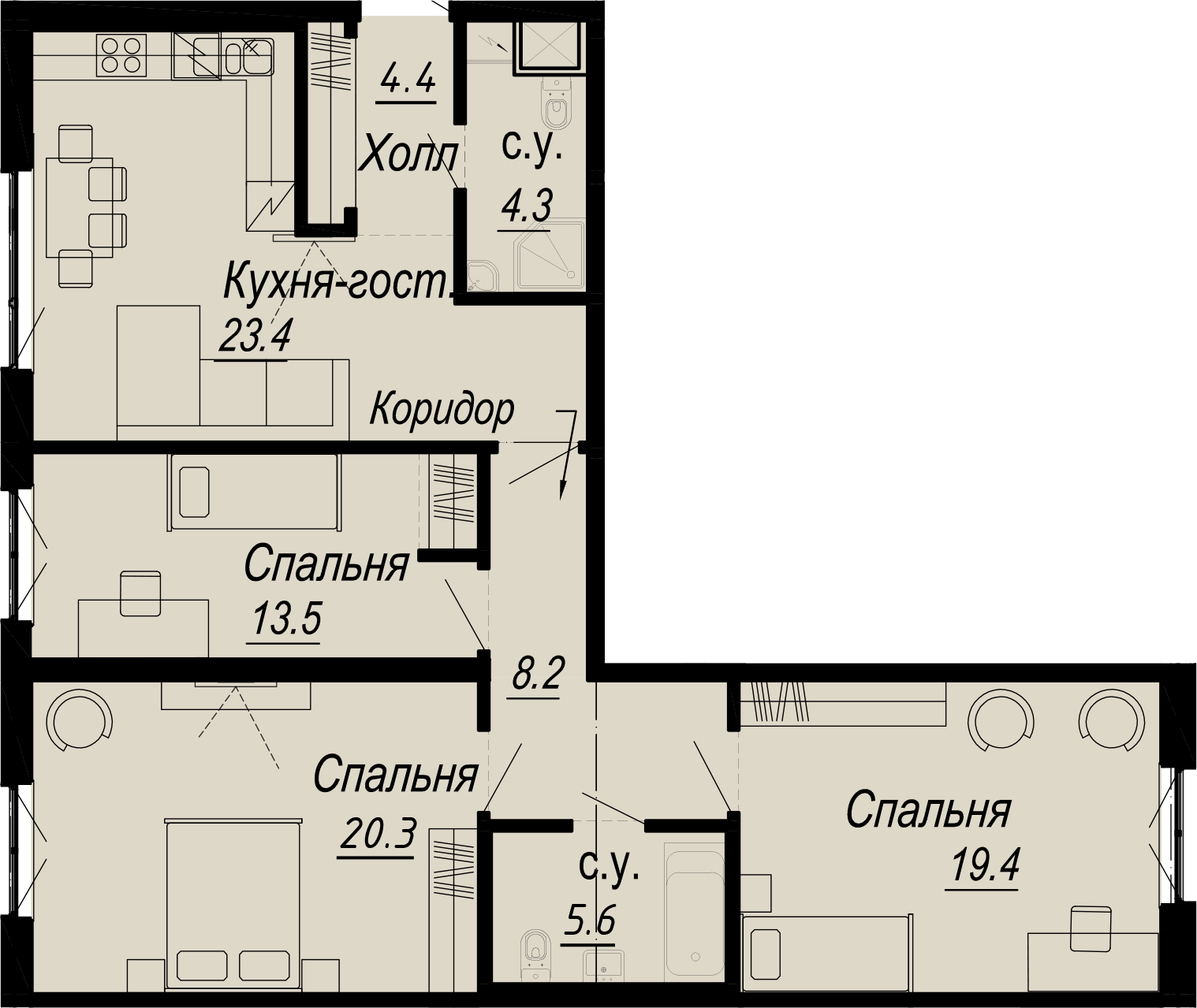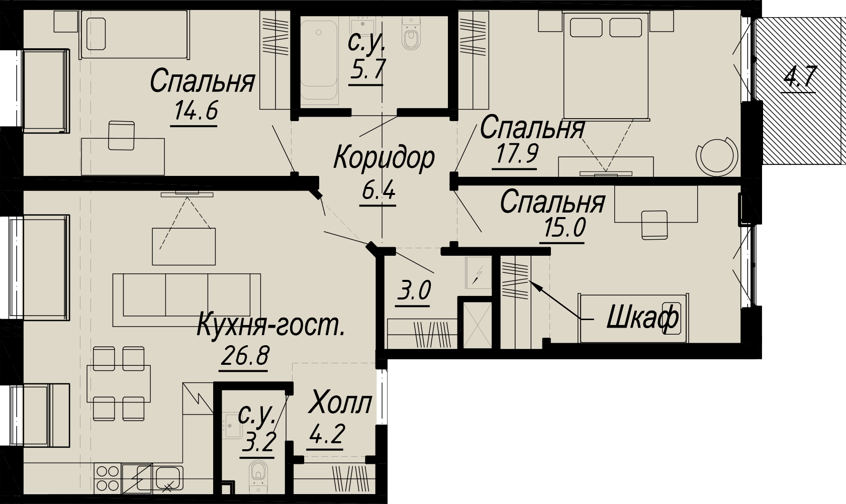Трехкомнатные квартиры в ЖК «Клубный дом Meltzer Hall (Мельцер Холл)»