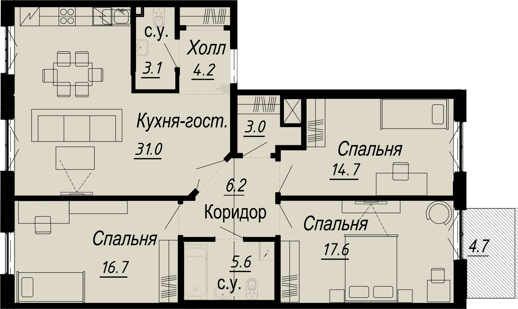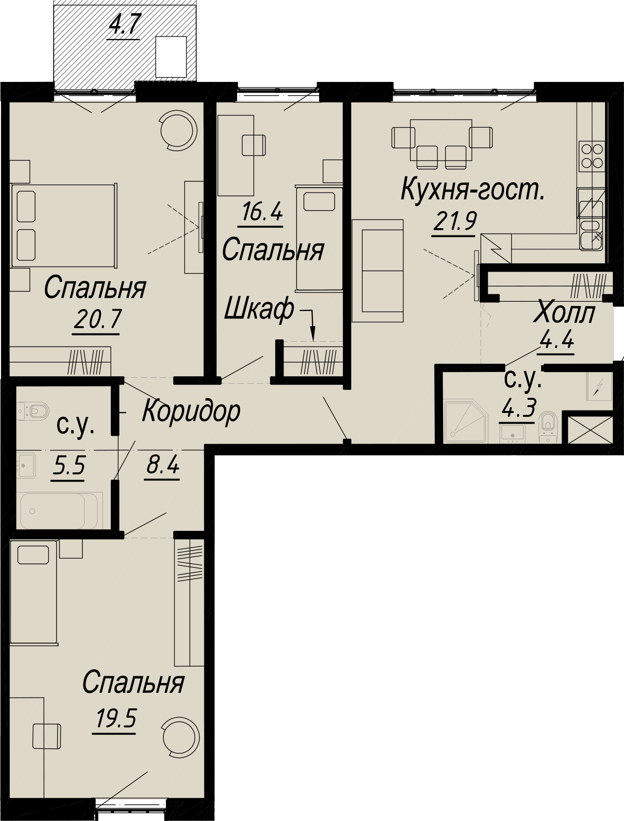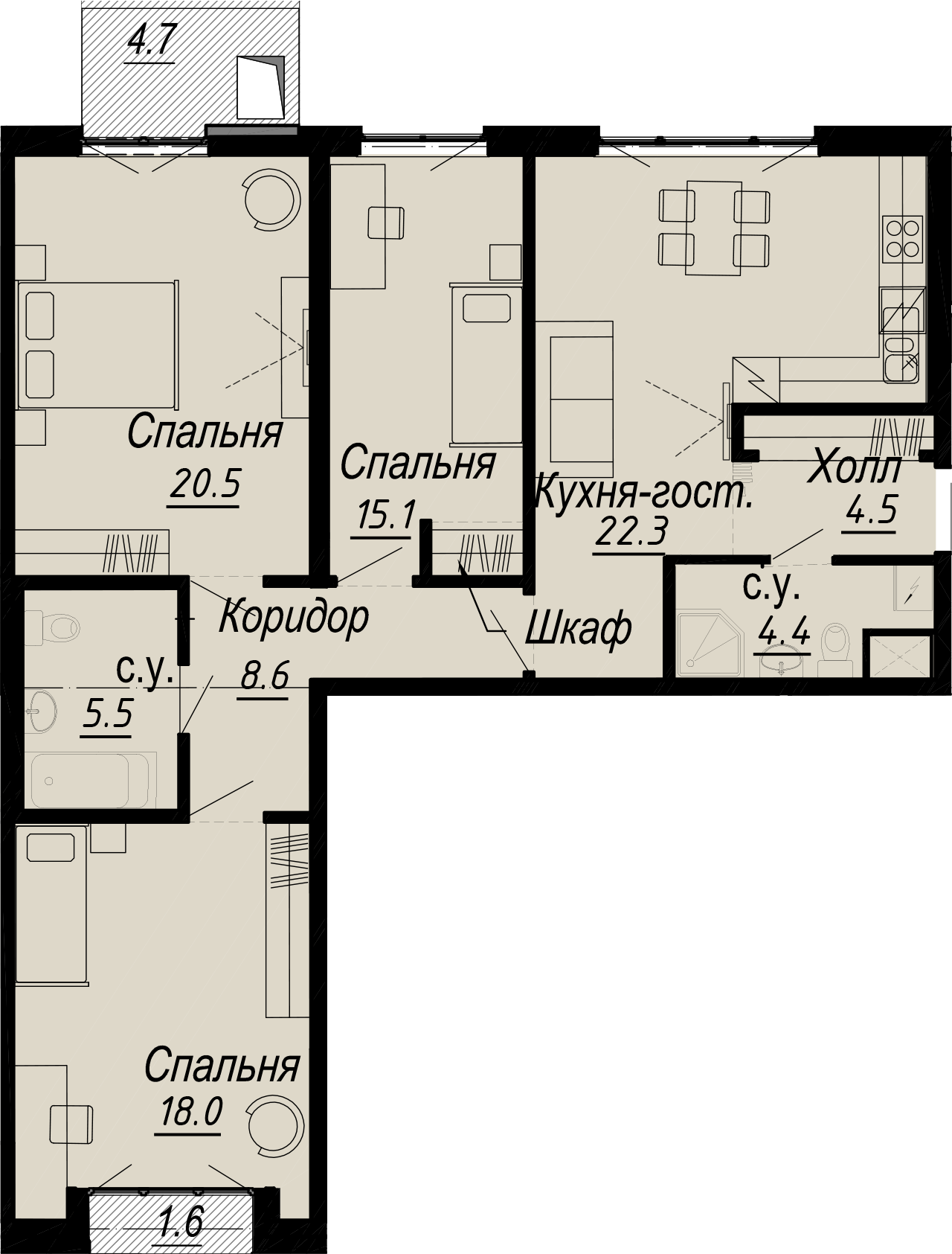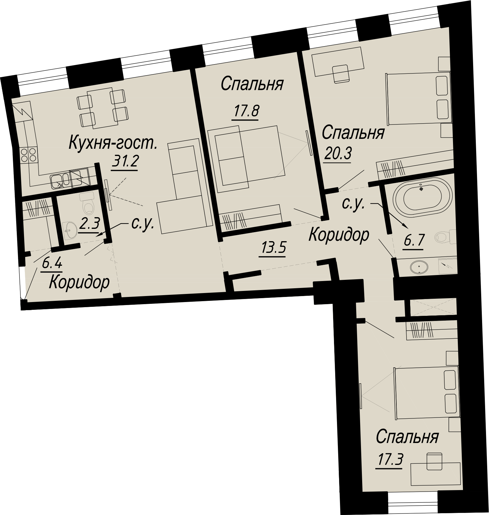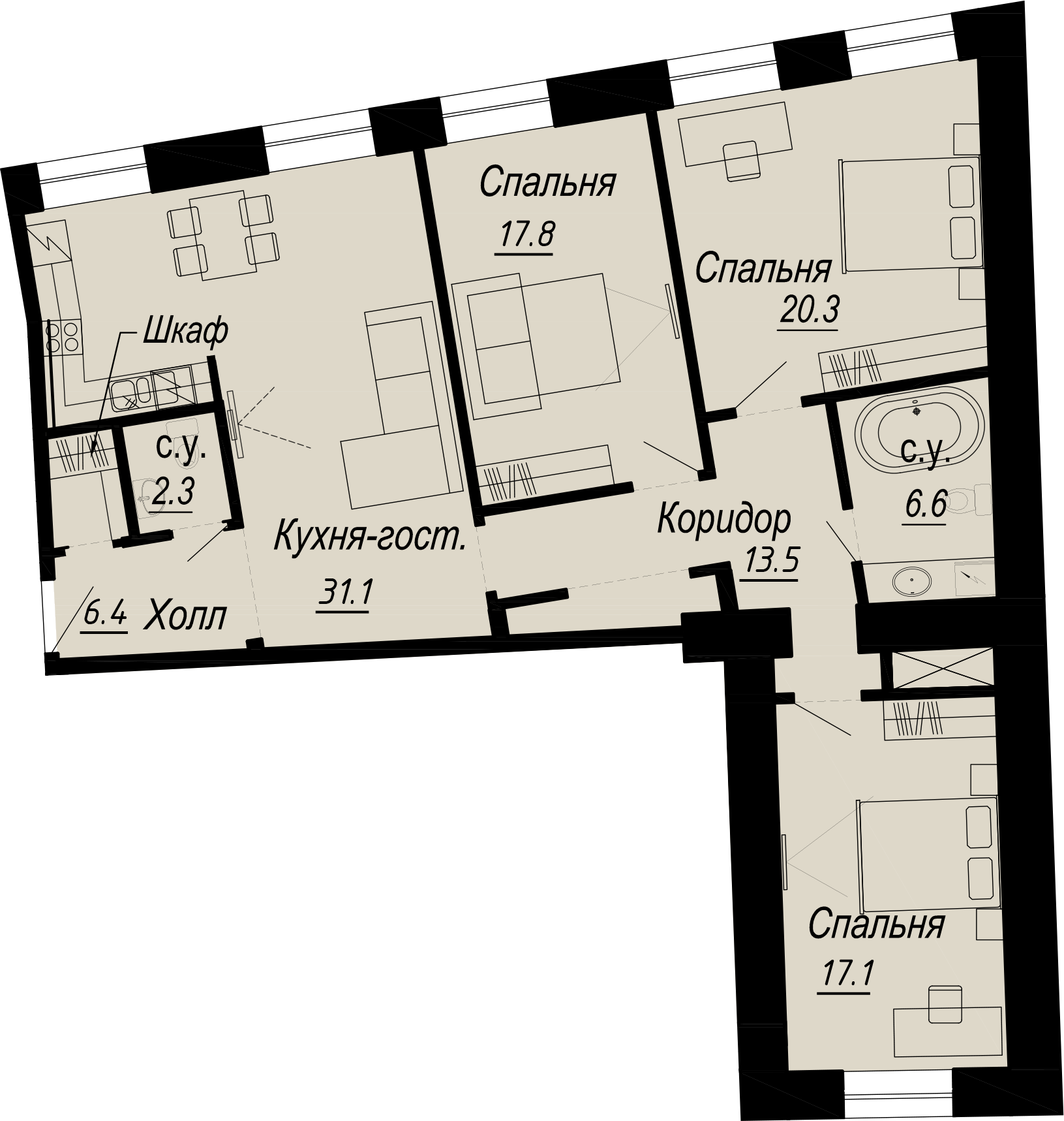 Трехкомнатные квартиры в ЖК «Клубный дом Meltzer Hall (Мельцер Холл)»