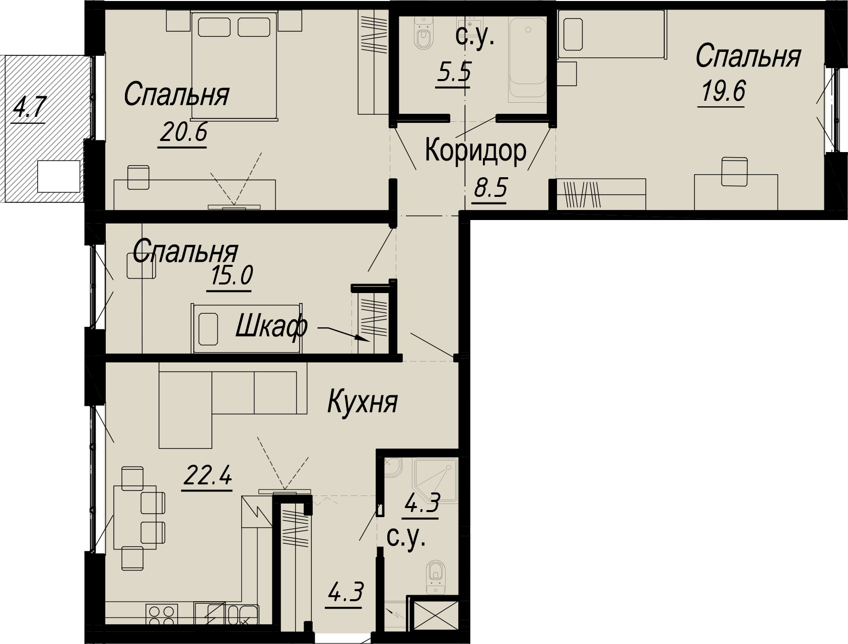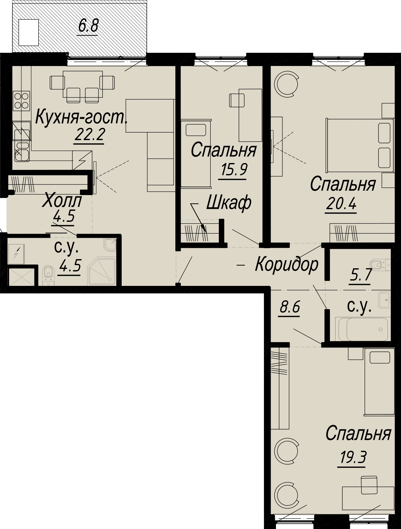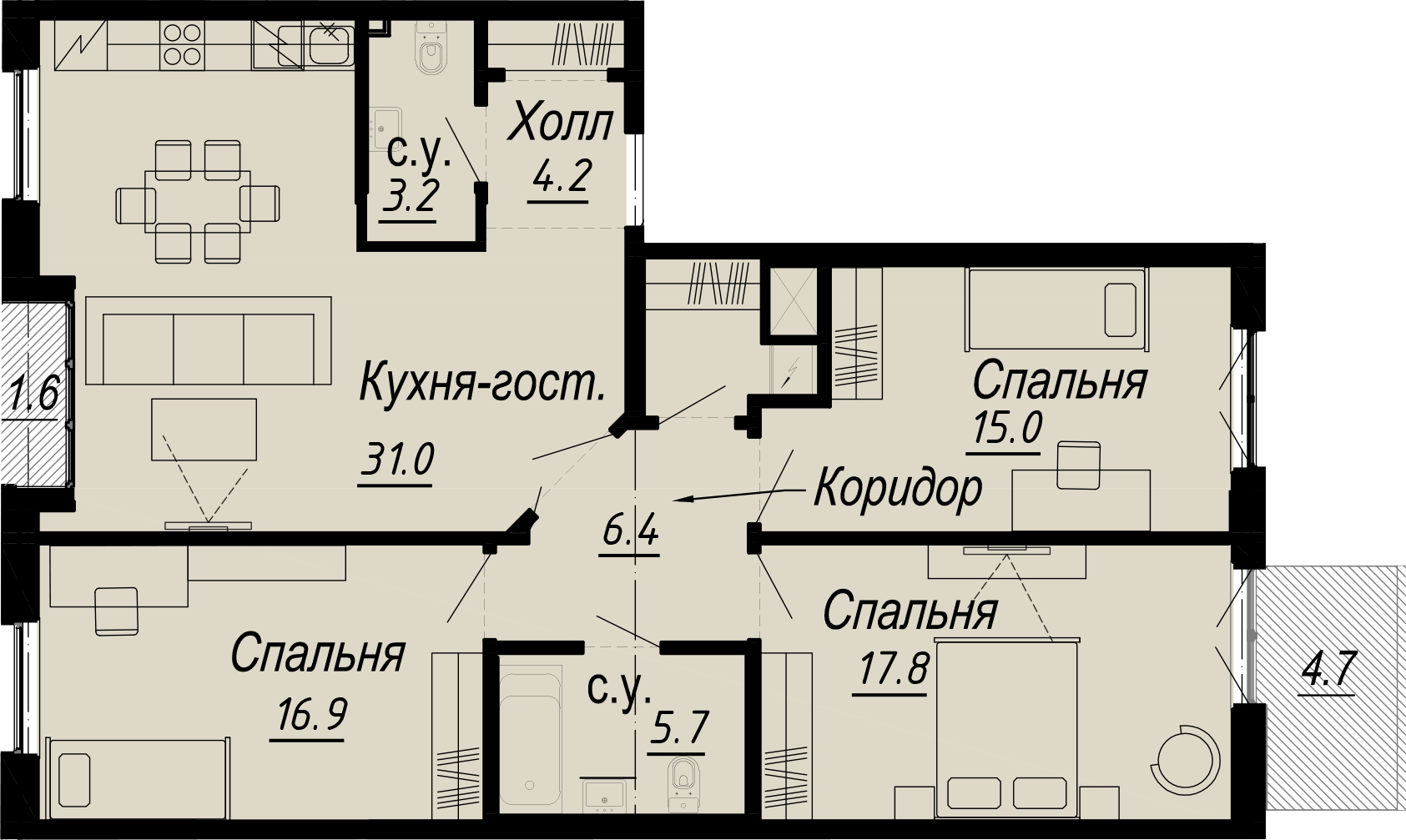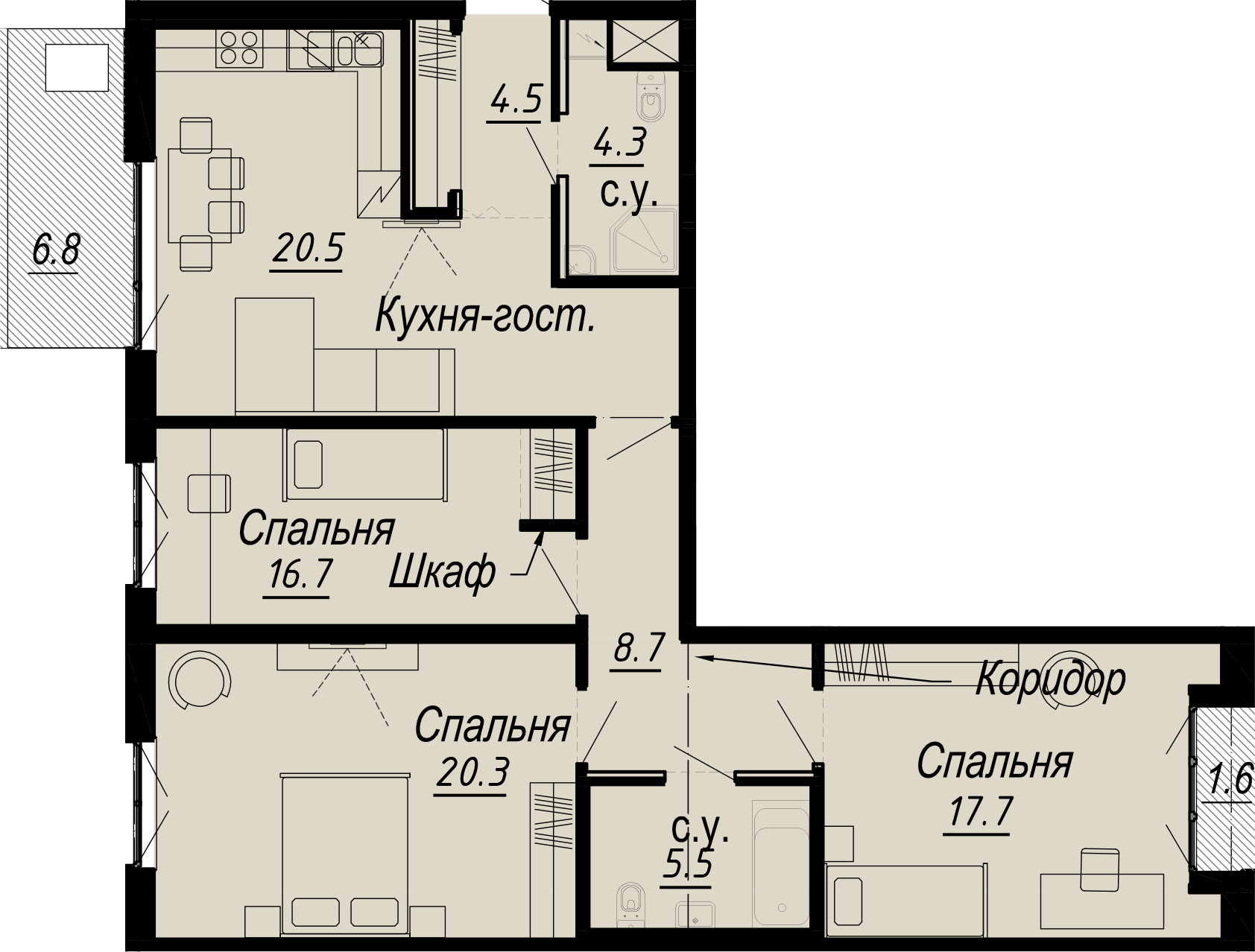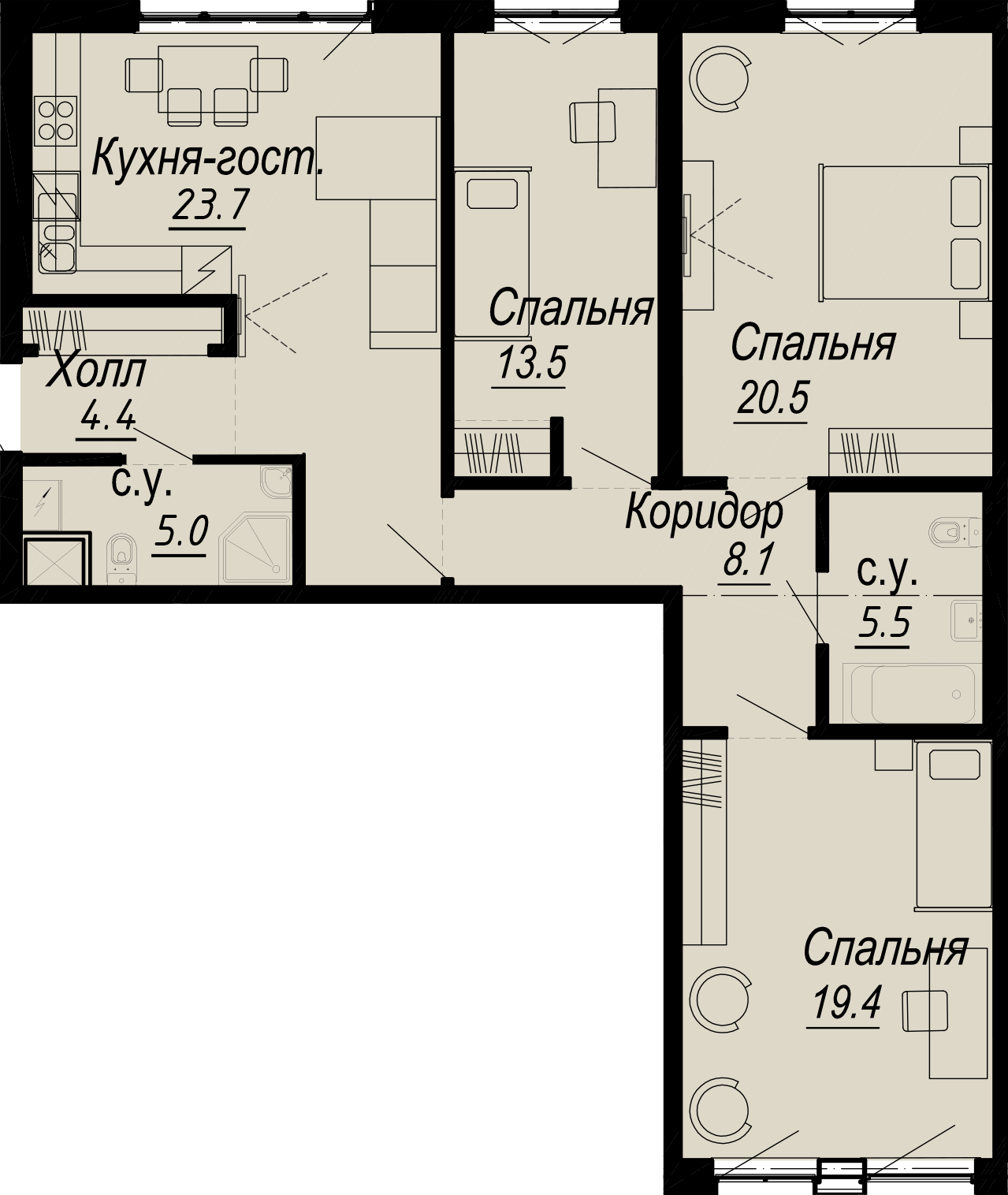 Трехкомнатные квартиры в ЖК «Клубный дом Meltzer Hall (Мельцер Холл)»