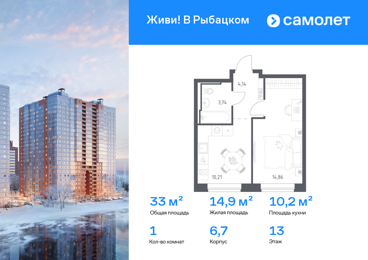 Однокомнатные квартиры в ЖК Живи! В Рыбацком