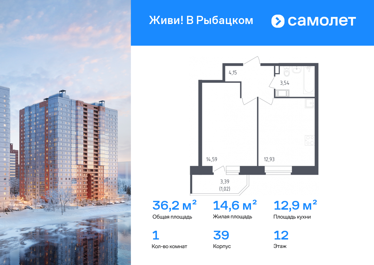 Однокомнатные квартиры в ЖК Живи! В Рыбацком