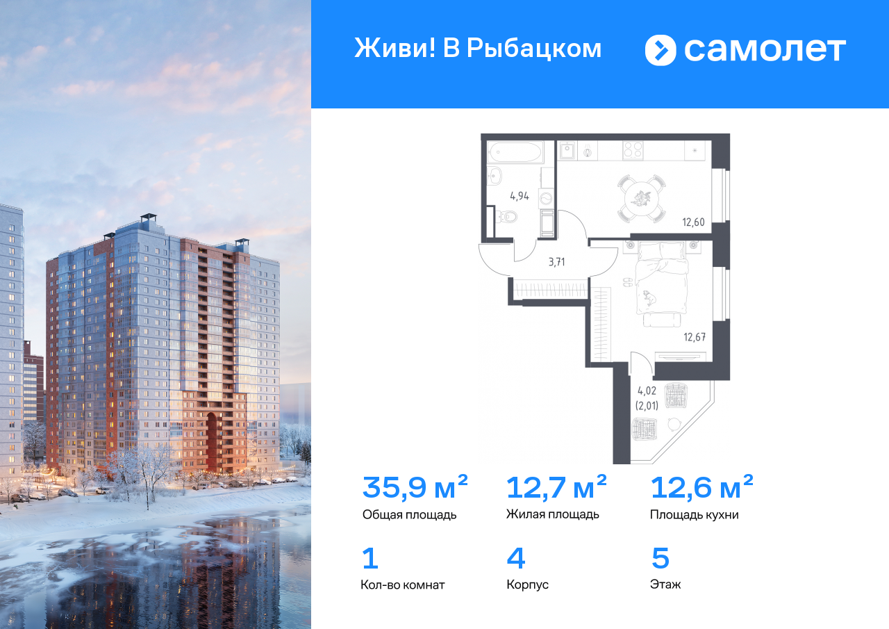 Однокомнатные квартиры в ЖК Живи! В Рыбацком