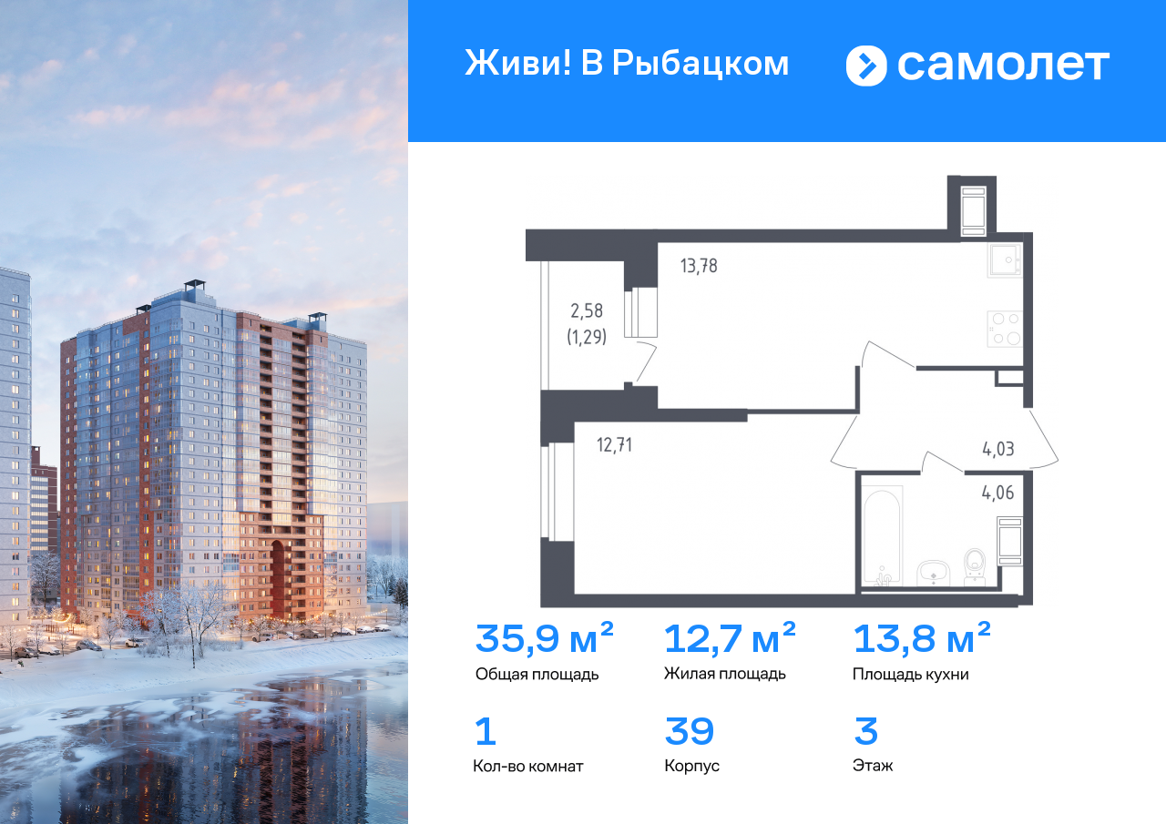 Однокомнатные квартиры в ЖК Живи! В Рыбацком