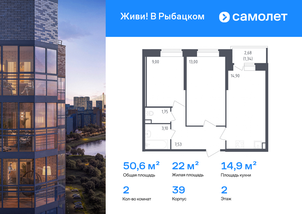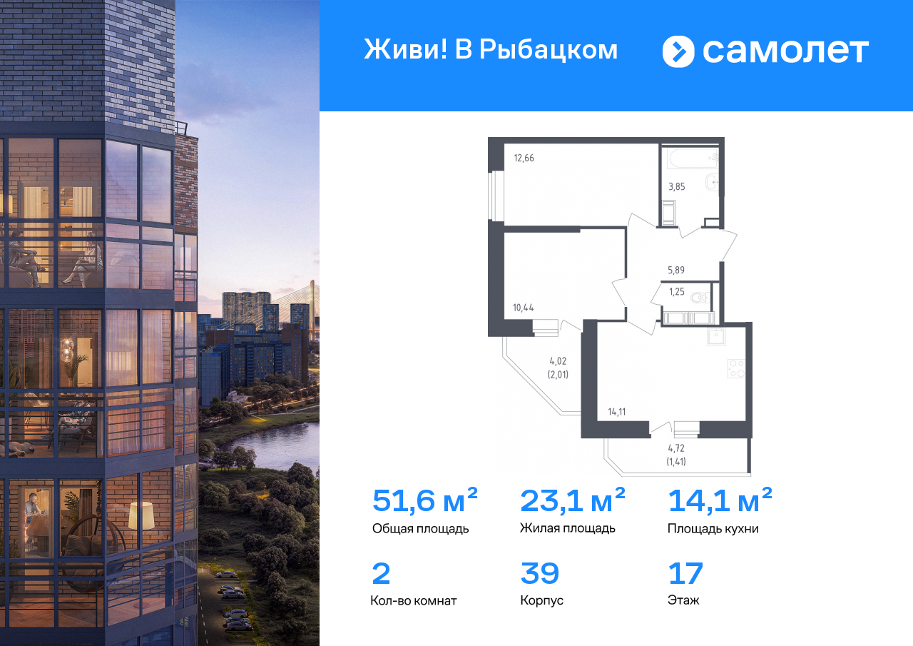 Двухкомнатные квартиры в ЖК Живи! В Рыбацком
